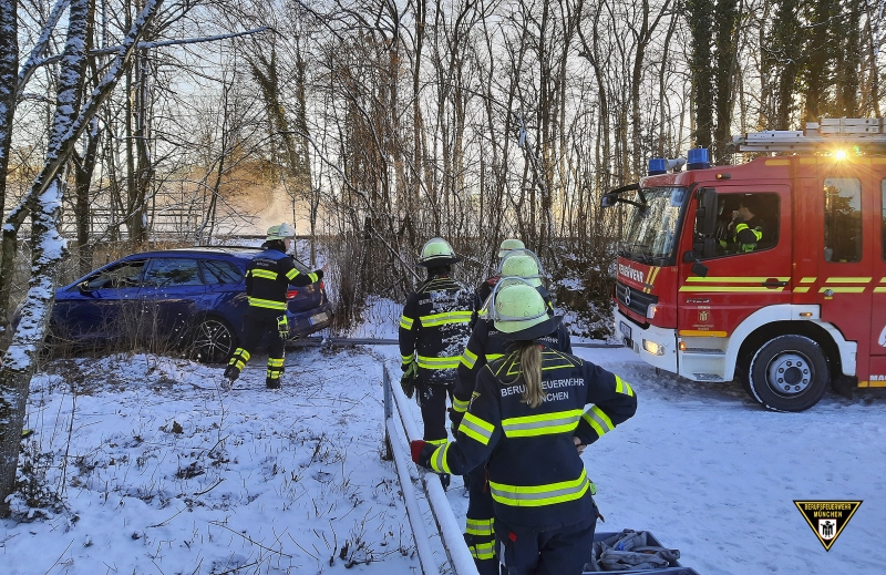 Eine Zeugin hatte beobachtet, wie ein blauer Seat in ein Gebüsch fuhr und dort kurz vor den Gleisen zum Stehen kam. Daraufhin wählte sie den Notruf der Feuerwehr. Die zum Einsatzort geschickten Einsatzkräfte der Feuerwehr und der Polizei fanden den Wagen im Gestrüpp an einem Hang zu einer tieferliegenden Straße. Hier war es so aufgesessen, dass das Fahrzeug nicht mehr weggefahren werden konnte. Der Einsatzleiter entschied daher, das Fahrzeug vom Hang zurückzuziehen. Mit einer Bandschlinge und einem feinfühligen Fuß am Gaspedal zogen die Einsatzkräfte so das Fahrzeug einige Meter zurück und sicherten es vor dem Wegrollen. Die Polizei übernahm die Ermittlungen, das Fahrzeug wurde dem Halter übergeben.
