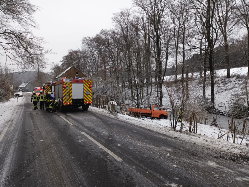 Am 10.01.2026 rückte die Feuerwehr Sprockhövel um 9:25 Uhr und um 12:00 Uhr aus. Der erste Einsatz war auf der Wuppertaler Straße. Hier war ein PKW von der Straße abgekommen und einen Hang heruntergerutscht. Zwei Insassen des PKWs wurden vom Rettungsdienst in einem angrenzenden Haus behandelt. Die Einsatzkräfte sicherten den Verkehr ab, erkundeten das Umfeld des PKWs auf auslaufende Betriebsmittel. Es waren keine Betriebsmittel ausgelaufen. Der Rettungsdienst wurde bei der Versorgung der Personen unterstützt. Beide Personen waren leicht verletzt. Beim zweiten Einsatz hatte sich, wie 8 Tage zuvor, wieder ein Waldkäuzchen in einen Kamin verirrt. Der Einsatzort war in der Quellenburgstraße. Die Einsatzkräfte befreiten das Waldkäuzchen und brachten es zur weiteren Versorgung Herrn Thorsten Kestner von der Wildvogelstation Paasmühle. Insgesamt waren bei beiden Einsätzen 20 Feuerwehrkräfte für ca. zwei Stunden im Einsatz.
