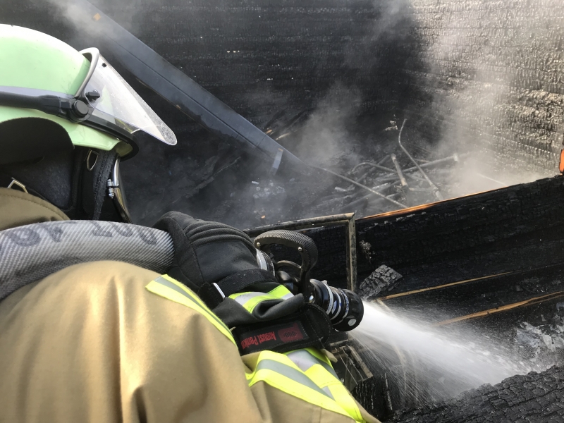 Die ersteintreffenden Kräfte der Freiwilligen Feuerwehr Kirchhellen leiteten umgehend ein Löschangriff von zwei Seiten ein. Hierdurch konnte das Feuer im Werkstattgebäude schnell gelöscht werden. Im Anschluss wurde die Brandbekämpfung des Wohnwagenanhängers eingeleitet. Parallel wurde die Dachhaut des Werkstattgebäudes kontrolliert, um auszuschließen, dass sich hier noch Glutnester befanden.