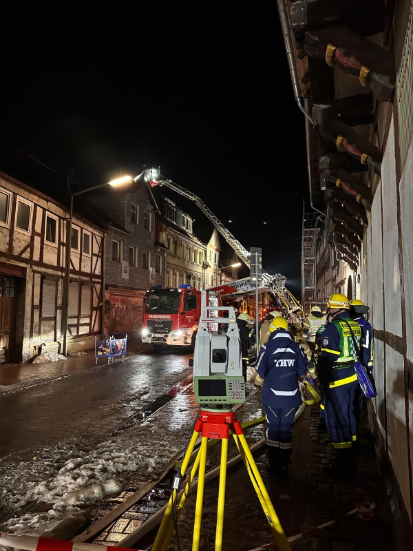 In Summe wurden 5 Personen aus dem Gebäude gerettet, vier Personen wurden ins Krankenhaus transportiert. Eine Person wurde ambulant vor Ort behandelt. Eine Feuerwehrkraft wurde beim Innenangriff leicht verletzt und ebenfalls vor Ort behandelt. Weitere Infos zu Art und Schwere der Verletzungen liegen nicht vor. Vier Katzen konnten nur noch tot geborgen werden. Es wurde ein sogenannter Massenanfall von bis zu 7 Verletzten ausgelöst (MANV7). Auf dem benachbarten Hof "Kramers Gut" wurde sowohl die Betreuung der Betroffenen sichergestellt, als auch die Verpflegung der Einsatzkräfte durch die Verpflegungseinheit der Kreisfeuerwehr Helmstedt und das DRK Kreisverband Helmstedt - SEG Betreuung gestellt. Die Kreisfeuerwehr brachte zudem den Abrollbehälter Atemschutz zur Einsatzstelle, um weitere Atemschutzgeräte vor Ort zu haben. Durch die Ortsfeuerwehr Offleben-Reinsdorf erfolgte die Einsatzhygiene, Reinigen und Aufnahme von kontaminierten Einsatzkleidungen. Die Drohne der Kreisfeuerwehr verschaffte fortlaufend ein Blick von oben mittels Wärmebildkamera. Das THW war ebenfalls vor Ort mit zwei Fachberatern Bau, um die Standsicherheit des Gebäudes zu prüfen. Im weiteren Verlauf wurde zusätzlich das sogenannte ESS (Einsatzstellen-Sicherungssystem) in den Einsatz gebracht. Dieses überprüft mittels Messgeräten permanent Bewegung am Gebäude und warnt die Einsatzkräfte falls dieses einzustürzen droht. Da nicht alle Glutnester mittels Drehleiter erreicht werden konnten, wurde der Feuerwehrkran der Berufsfeuerwehr Braunschweig nachgefordert. Dieser unterstütze die Nachlöscharbeiten. Abschließend wurde durch das THW das Gebäude gegen unbefugtes Betreten gesichert. Das Brandobjekt ist bis auf weiteres unbewohnbar. Die Bewohner und direkten Nachbarn wurden durch die Stadtverwaltung in einem Hotel sowie bei Freunden untergebracht. Bürgermeister Wittich Schobert und 1. Stadtrat Henning-Konrad Otto waren ebenfalls vor Ort und kümmerten sich persönlich darum. In Summe waren bis zu 200 Einsatzkräfte vor Ort. Der Lange Steinweg ist bis auf weiteres vollständig (Personen und Fahrzeuge) gesperrt. Die Einsatzstelle wurde der Polizei übergeben.
