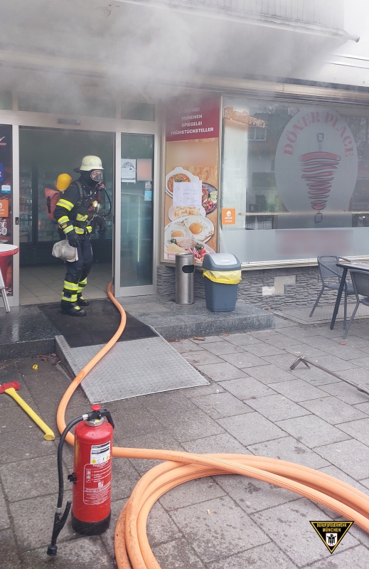 Am Samstagnachmittag ist die Feuerwehr München zu einem Brand in einem Schnellimbiss alarmiert worden. Trotz des hohen Gefahrenpotentials wurde niemand verletzt.