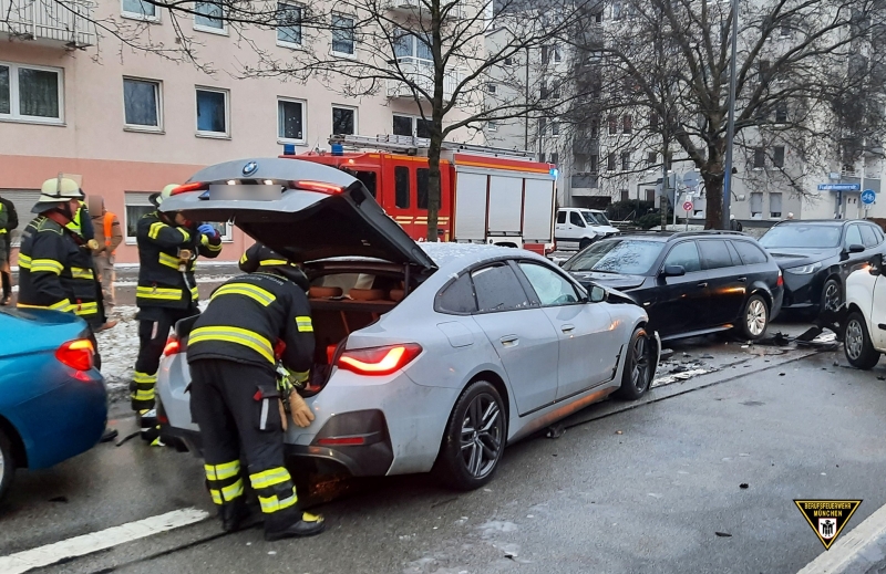 Die betroffenen Fahrzeuge sind zum Teil schwer beschädigt worden. Einsatzkräfte der Feuerwehr übernahmen die medizinische Erstversorgung des Unfallfahrers bis zum Eintreffen des Rettungsdienstes. Durch die Feuerwehr wurden auslaufende Betriebsstoffe gebunden, der Brandschutz sichergestellt und eine Verkehrsabsicherung eingerichtet. Da die Erkundung durch den Zugführer der Feuerwehr ergab, dass es sich beim Auto des Unfallverursachers um ein Hybrid-Fahrzeug handelt, wurde über die Integrierte Leitstelle das passende Rettungsdatenblatt angefordert. Mit den Informationen aus der Rettungskarte konnten die Hochvolt-Komponenten am Fahrzeug schnell und sicher deaktiviert und so weitere Gefahren für die Einsatzkräfte minimiert werden. Der 49-Jährige wurde vom Rettungsdienst in eine Münchner Klinik transportiert.