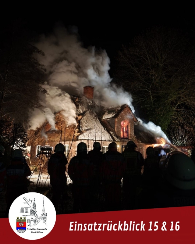 Gegen 23:40 Uhr nahmen Anwohner im Möhlenweg ein Feuer am Reetdach eines Einfamilienhauses wahr und alarmierten die Einsatzkräfte. Nach bisherigen Erkenntnissen brach aus bislang ungeklärter Ursache im Bereich eines Holzunterstandes ein Feuer aus. Dieses Feuer setzte das angrenzende Reetdach in Brand. Die Anwohner konnten das Gebäude unverletzt verlassen.