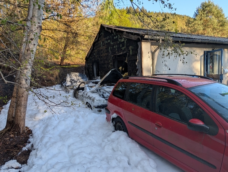 Da die beiden PKW in unmittelbarer Nähe eines Wohngebäudes abgestellt waren, griff das Feuer auch auf das Haus über.