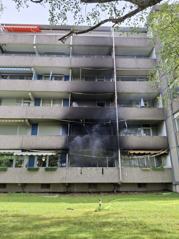 Bei Eintreffen an der Einsatzstelle fanden die Einsatzkräfte eine Wohnung im Vollbrand vor. Flammen schlugen aus einer Erdgeschosswohnung. Der dichte, dunkle Brandrauch zog an der kompletten Gebäuderückseite in den Himmel. Auf der Gebäudevorderseite konnte ebenfalls eine dunkle Rauchentwicklung wahrgenommen werden. Umgehend wurde von beiden Seiten des Gebäudes ein Löschangriff vorgenommen. Die ersten Löschmaßnahmen wurden über die geborstene Fensterscheibe auf der Gebäuderückseite eingeleitet. Im weiteren Verlauf wurden die Lösch- und Nachlöscharbeiten von einem Trupp unter Atemschutz über den Wohnungseingang übernommen. Das Feuer in der komplett ausgebrannten Wohnung konnte zügig gelöscht werden. Die Brandwohnung ist bis auf weiteres unbewohnbar. Aufgrund der starken Rauchentwicklung und Rauchausbreitung wurden mehrere benachbarte Wohnungen auf Raucheintritt kontrolliert. Der Brand blieb auf die betroffene Wohnung begrenzt, jedoch sind drei angrenzende Wohneinheiten aufgrund von Raucheintritt vorerst nicht bewohnbar. Die betroffenen Bewohner haben bereits selbstständig bei ihrer Familie eine vorübergehende Unterkunft gefunden oder werden durch den Eigentümer anderweitig untergebracht. Glücklicherweise gibt es keine verletzten Personen. Zur Brandursachenermittlung wurde die Einsatzstelle an die Polizei übergeben. Während des Einsatzes war der Brüsseler Straße für den Verkehr gesperrt.