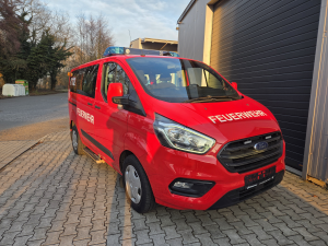 Ford Transit Custom Erstzulassung 22.08.2018 Diesel 77kW/105PS 150km/h 6 Gang Schaltgetriebe 103.000km zGG 3.190kg Anhängerkupplung gebremst bis 2.200kg, ungebremst 750kg Das Fahrzeug wird inkl. allen benötigten Abnahmen (Eintragung als Sonder-Kfz Feuerwehrfahrzeug Mannschaftstransporter oder Mehrzweckfahrzeug bzw. bei Kauf durch HiOrg als KatS. Einsatzfahrzeug MTF oder MZF umgeschlüsselt) übergeben. HU/AU aktuell bis 12.2027 Klimaanlage Radio mit USB Anschluß Freisprecheinrichtung Multifunktionslenkrad Bordcomputer Tagfahrlicht Fahrersitz mit Armlehnen Digitalfunkantenne bereits aufgebaut und Antennenkabel bis in die Beifahrersitzbank verlegt. Signalanlage mit Durchsagefunktion, bestehend aus: