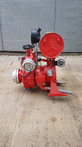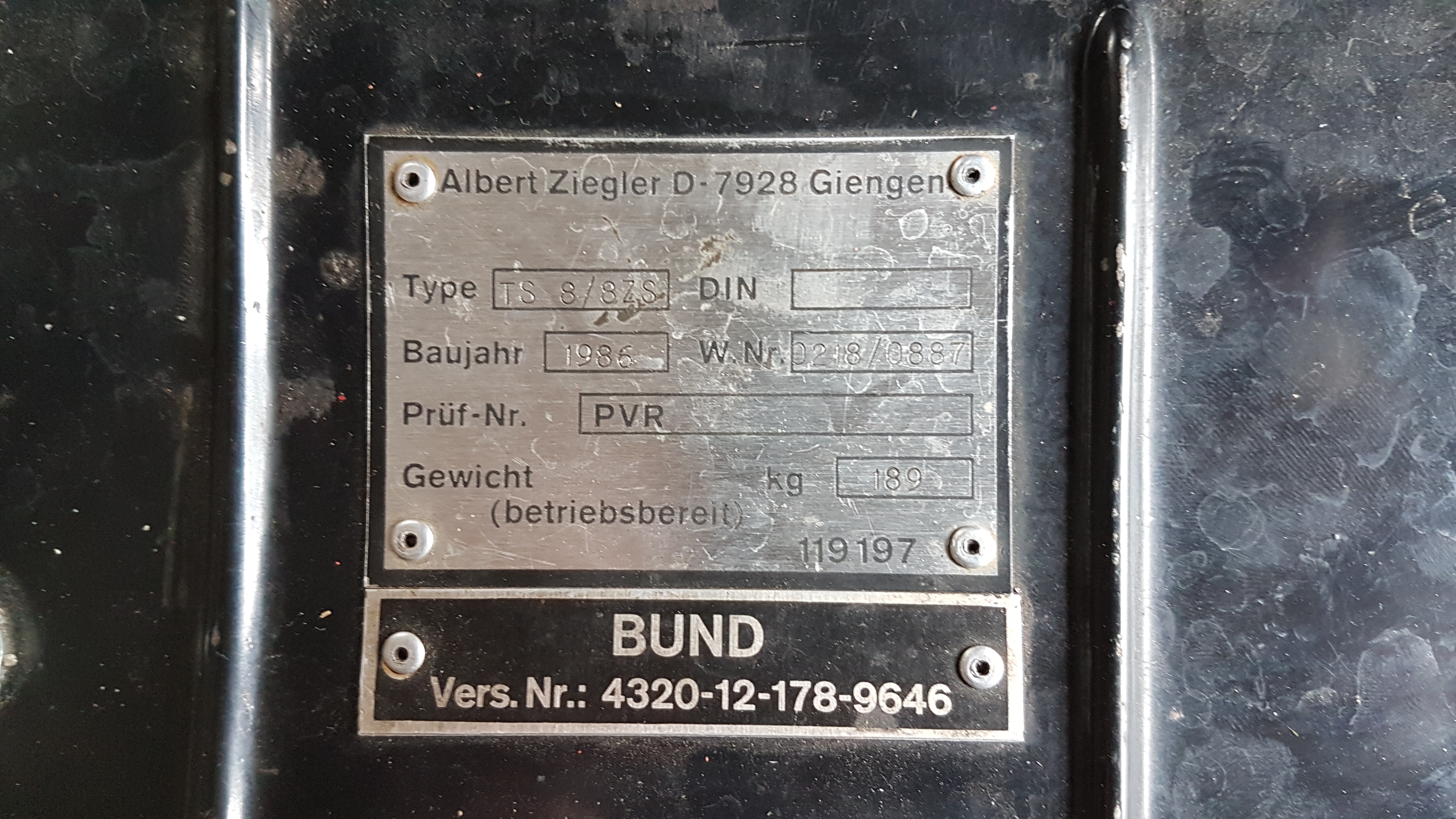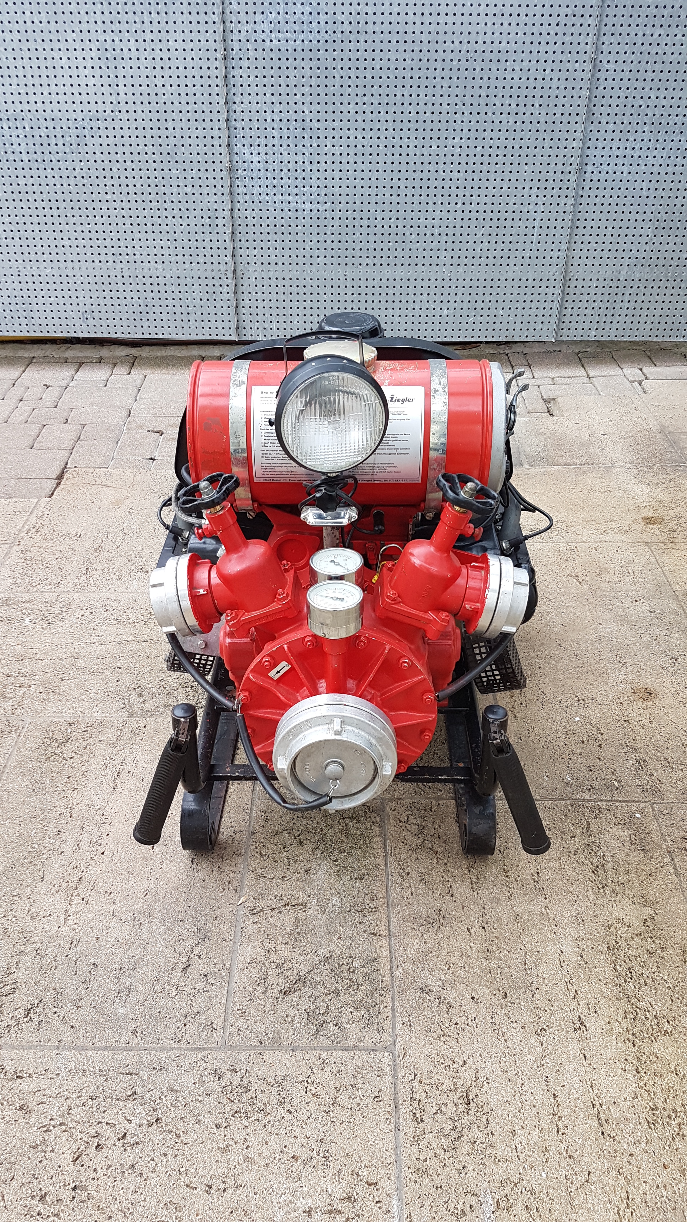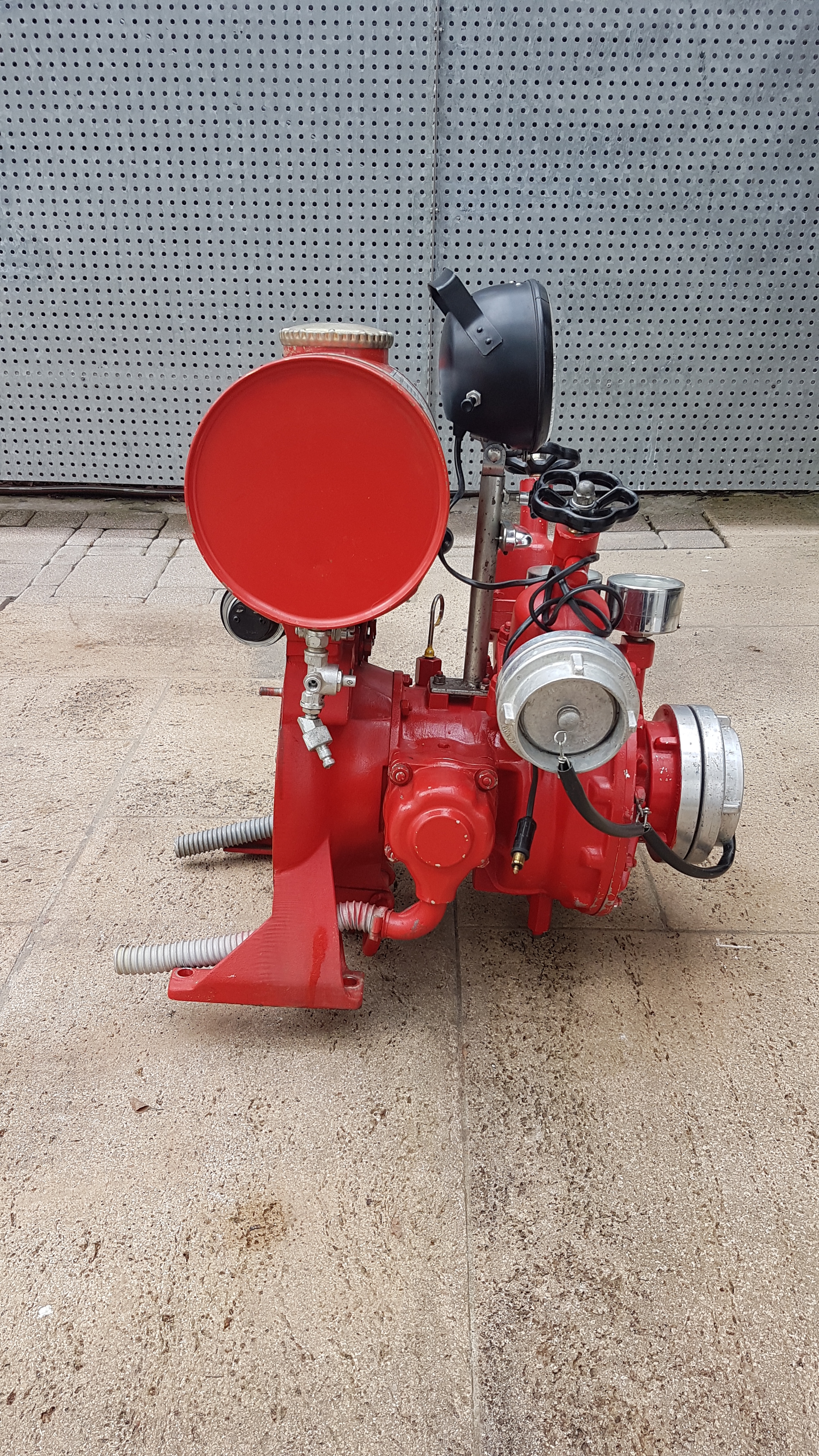 Zum Verkauf steht ausschließlich die Pumpeneinheit. Der ursprünglich in der der Tragkraftspritze verbaute Limbach Motor ist nicht Teil des Angebots.