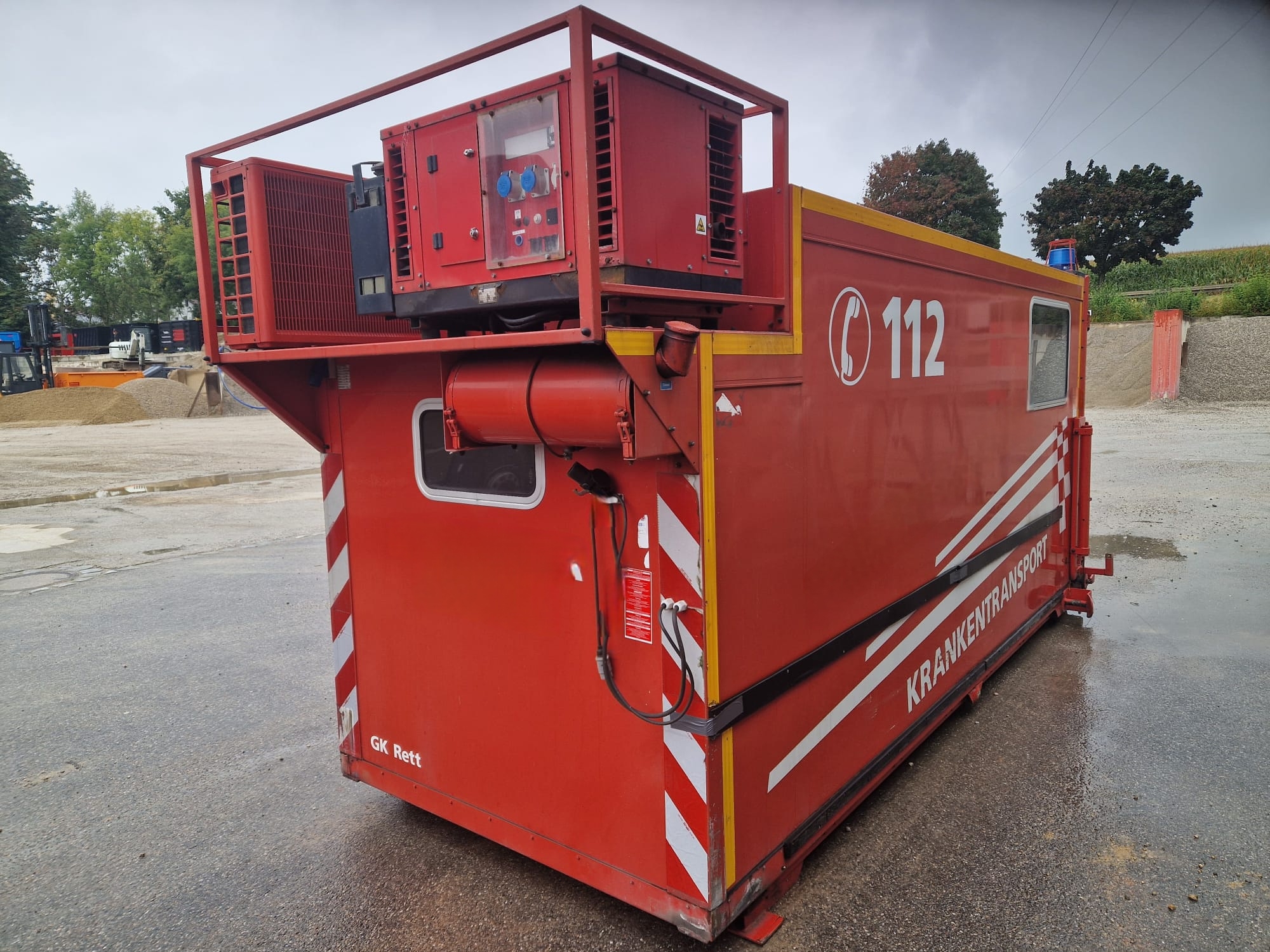 Er hat Klima und ein Notstromaggregat dabei. Der zweite Container ist eine Transportmulde, ideal zum einfahren für sehr niedrige Fahrzeuge.