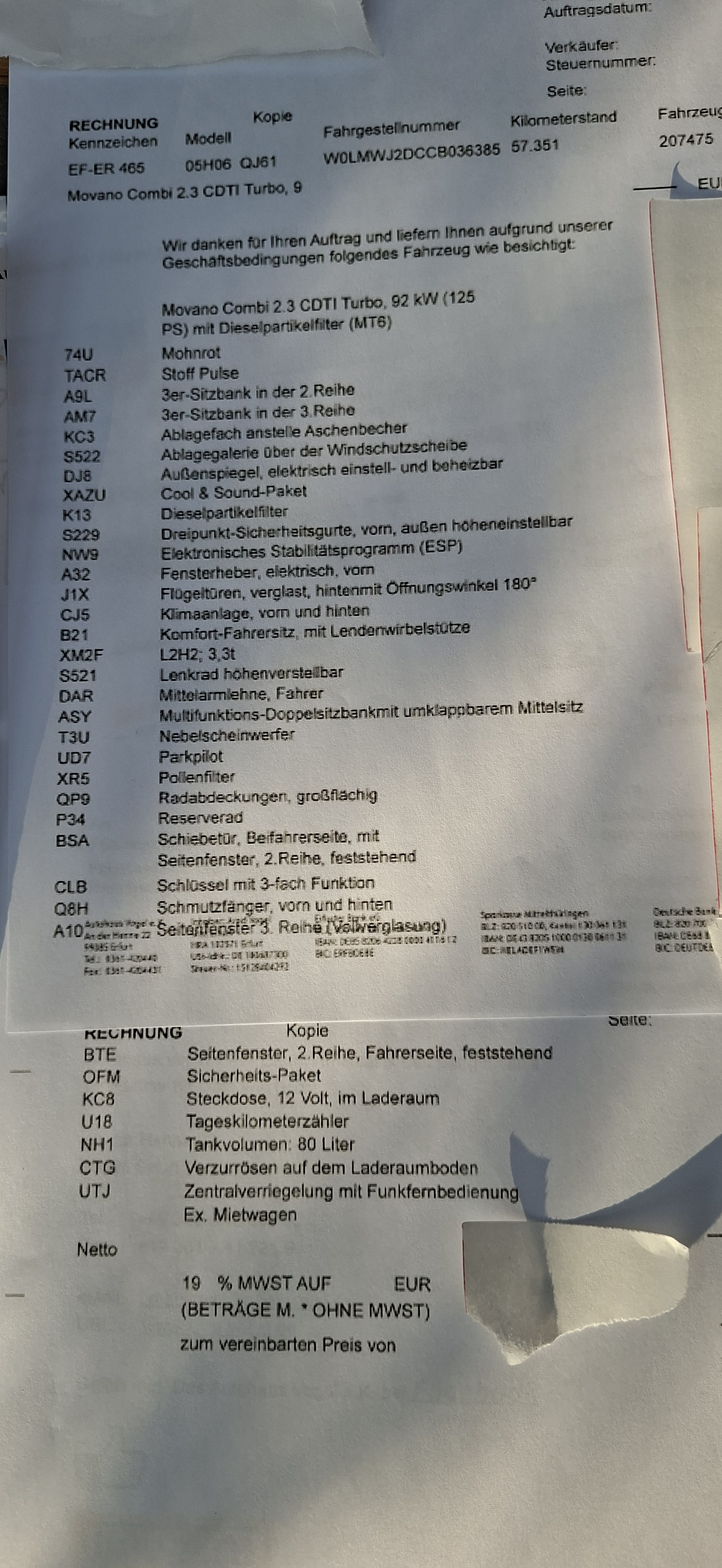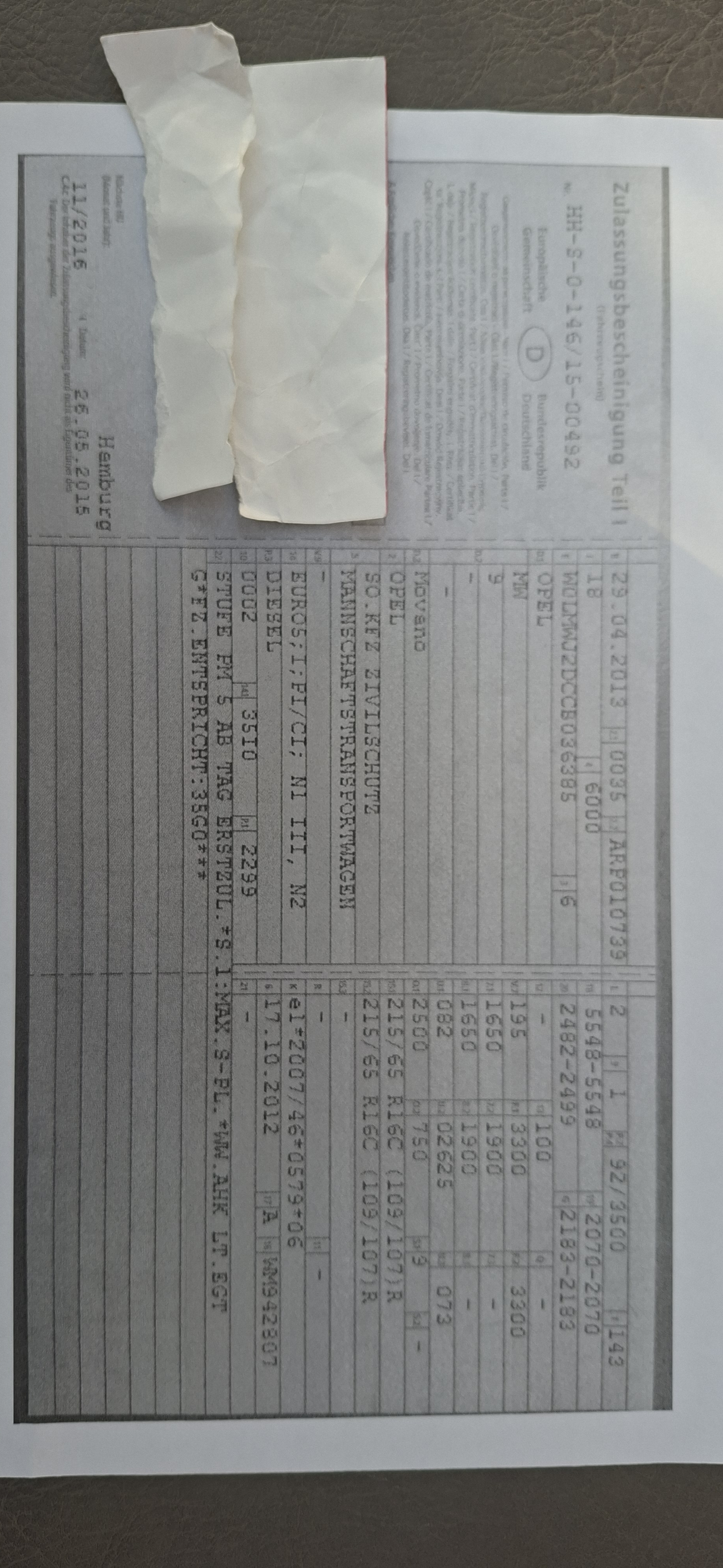 Hallo ich verkaufe einen Opel Movano 9sitzer Feuerwehr Mannschaftstransportwagen aus dem Jahre 2012 mit 81235km, der auch als Sonder-KFZ Zivilschutz zugelassen ist, d.h. er ist Steuerbefreit und könnte einen Blaulichtbalken bekommen. Er stammt aus einer freiwilligen Feuerwehr in Hamburg, die gelegentlich mal die Jugend Feuerwehr gefahren hat deshalb die geringe Laufleistung! Gekauft wurde das Fahrzeug 2014 von einem Opel-Vertragshändler, der es als Erstbesitzer intern zwischen seinen NDL genutzt hatte. Das Scheckheft hat der Händler bis 57351km geplegt danach wurde das Fahrzeug intern bei der Feuerwehr gewartet. Ausstattung siehe Fotos auf der Rechnung und im Schein erkennt man die Details wie zb AHK usw.