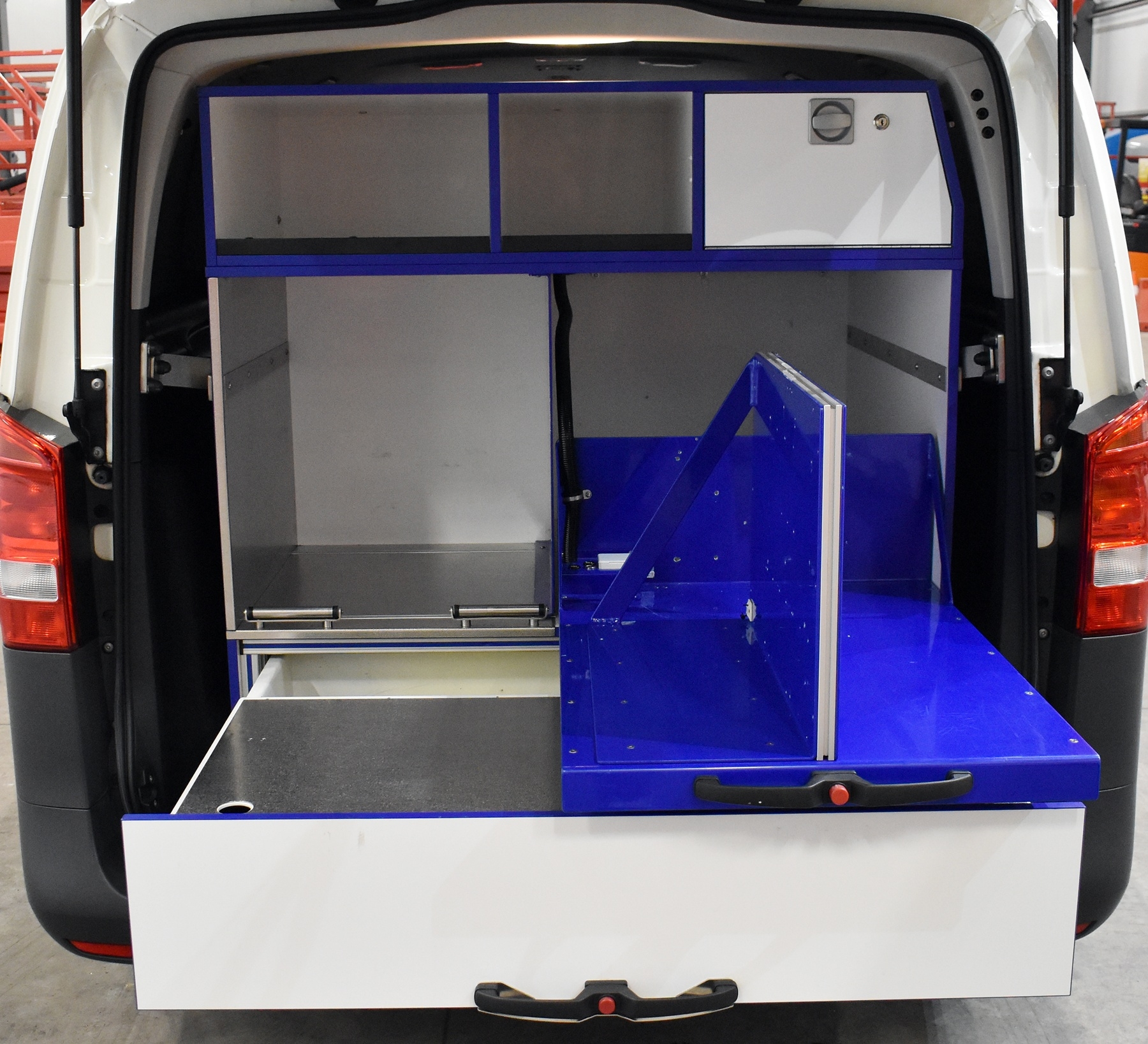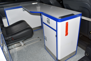 Nach DIN 75059: Druckkammerlautsprecher, Martin-Anlage, LED-Signalanlage, Unfalldatenspeicher, Thermofach, Kühlfach, Handy-Freisprecheinrichtung, Schrank im Heckbereich, Arztsitz, Arbeitstisch