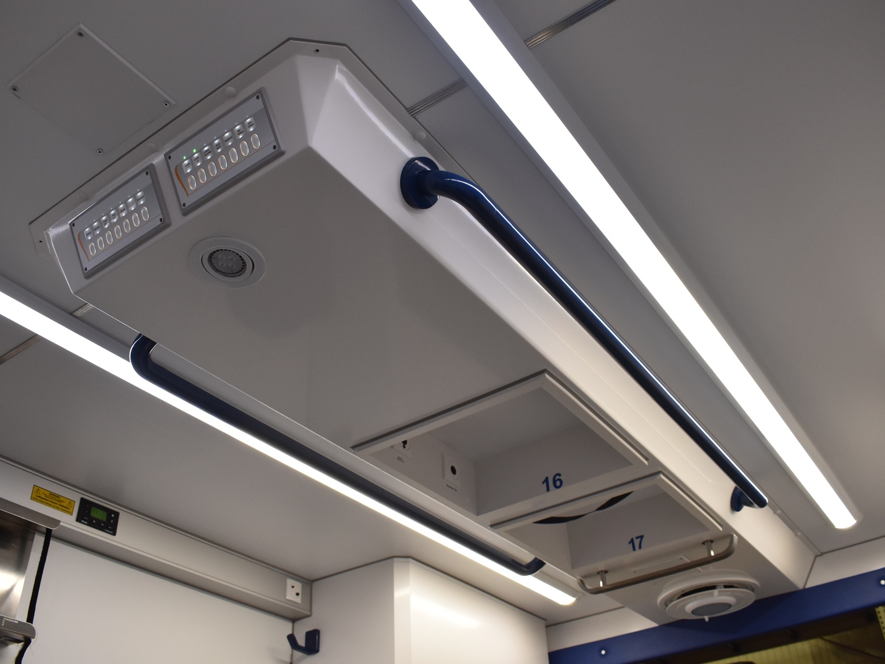 Tagfahrlicht, Klimaautomatik, Sitzplätze: 2 vorne / 3 hinten, klappbarer Arbeitstisch, umschaltbares blaues Traumalicht, Airbag, Elektrische Fensterheber und Seitenspiegel, Zentralverriegelung, Standheizung, ABS, ESP, CD-Radio, Servolenkung, Nebelscheinwerfer |