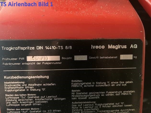 TS Airlenbach Iveco Magirus TS 8/8 Baujahr 1996 Schlechte bis keine Wasserförderung Wird als Defekt verkauft an den Meistbietenden Kann auf Wunsch und mit Terminvereinbarung angeschaut werden Angebote bis zum 03.03.2026 an brandschutz@stadt-oberzent.de TS Hetzbach Ziegler FP 8/8 Baujahr 2005 Motorschaden (Kolbenfresser) Teilweise zerlegt Wird als Defekt verkauft an den Meistbietenden Kann auf Wunsch und mit Terminvereinbarung angeschaut werden Angebote bis zum 03.03.2026 an brandschutz@stadt-oberzent.de TS Rothenberg Magirus TS 8/8 Baujahr 1986 Lässt sich sehr schwer starten Wird als Defekt verkauft an den Meistbietenden Kann auf Wunsch und mit Terminvereinbarung angeschaut werden Angebote bis zum 03.03.2026 an brandschutz@stadt-oberzent.de TS Schöllenbach Magirus TS 8/8 Baujahr 1996 Bei Betrieb starke Rußentwicklung, unrunder Lauf Wird als Defekt verkauft an den Meistbietenden Kann auf Wunsch und mit Terminvereinbarung angeschaut werden Angebote bis zum 03.03.2026 an brandschutz@stadt-oberzent.de Die jeweiligen Bezeichnungen sind in den jeweiligen Bildern oben links hinterlegt. 04.02.2026 Anzeige-Nr.: 100210 | ||