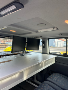 KDOW Mercedes-Benz VITO Baujahr 2008 148.478 km 150 PS Turbo Diesel Servolenkung ABS Automatikgetriebe Airbags 230V Einspeisesteckdose Bordsteckdosen, die im gesamten Fahrzeug verteilt sind. Radio Signaleinrichtung Lage- und Führungsraum, mit Besprechungstisch. Funkraum mit 2 Arbeitsplätzen so wie 1 Ausgabe-Fenster am Disponenten Platz. Schrank für Wärmebildkamera, Gas- Messtechnik, PC, Laptop, Zieh-Fix und AED Heckausbau Umfeld-Beleuchtung Weißlicht-Beleuchtung im Führungsraum Schiebetür auf der rechten Seite mit Schiebefenster. Das Fahrzeug verfügt über: Klimaanlage, Radio, Elektrische Fensterheber für Fahrer- und Beifahrertür.