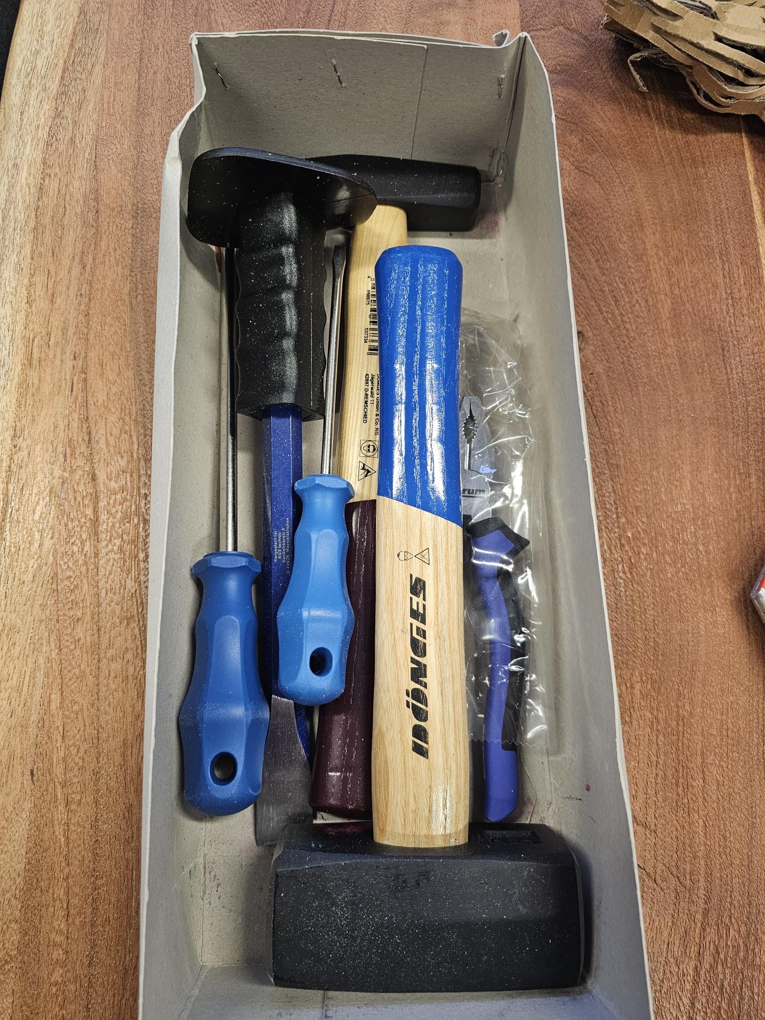 Restposten: 1 x Dönges Werkzeugsatz 6-teilig bestehend aus: Fäustel,Schlitzschraubenzieher groß&klein, Kombizange, Meißel, Schlosserhammer Preis: 12,50 brutto Mehrwehrtsteuer wird ausgewiesen Preis: 125.00 Euro 17.02.2026 Anzeige-Nr.: 100311 | |||