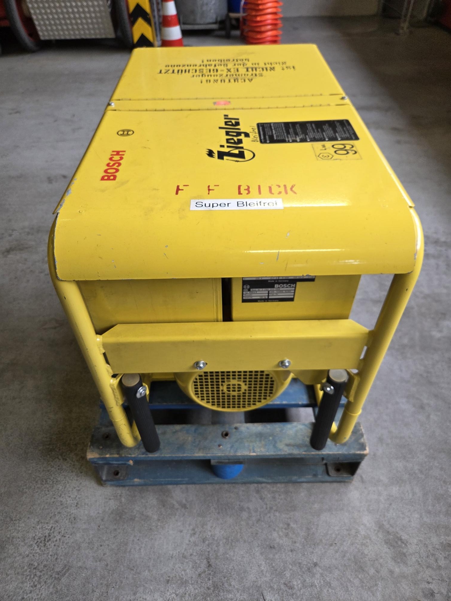 Die Feuerwehr Bickenbach verkauft einen Stromerzeuger BOSCH BSKA 8. Typ: BOSCH BSKA 8 nach DIN Baujahr: 1994 Betriebsstunden: 127 h Nennleistung: 8 kVA Abgänge: 3 x 230V / 1 x 400V Briggs & Stratton Motor Gewicht: 128 kg Das Gerät befindet sich in einem einsatzbereiten und sehr guten Zustand. Besichtigungen sind nach Vereinbarung möglich und ausdrücklich gewünscht. Gebote sind mit der Funktion „Nachricht an den Anbieter“ bis zum 22.03.2026 möglich. Das Mindestgebot beträgt € 1.000. Kein Versand, nur Abholung. Preis: 1000.00 Euro Mindestgebot 23.02.2026 Anzeige-Nr.: 100374 | ||