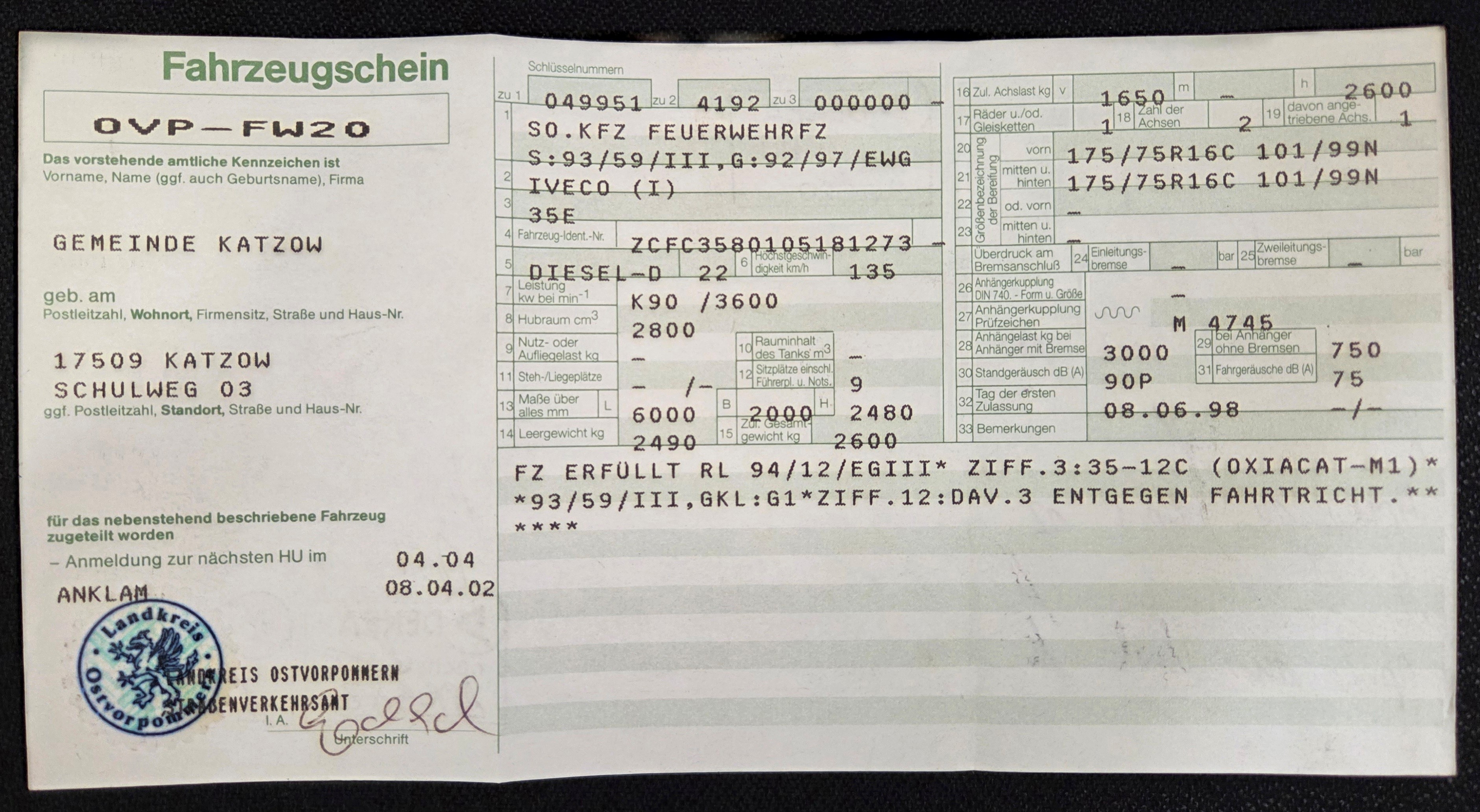 - Fahrzeugdaten siehe Zulassungsbescheinigung Teil 1 - der Verkauf erfolgt im Höchstgebotsverfahren - Mindestgebot 5.000,00 € Angebote können bis zum 31.03.2026 / 12:00 Uhr im Amt Lubmin, Geschwister-Scholl-Weg 15, 17509 Lubmin, oder unter der E-Mail-Adresse r.oestreich@amtlubmin.de eingereicht werden. Verspätet eingereichte Angebote finden keine Berücksichtigung. 05.03.2026 Anzeige-Nr.: 100465 | ||