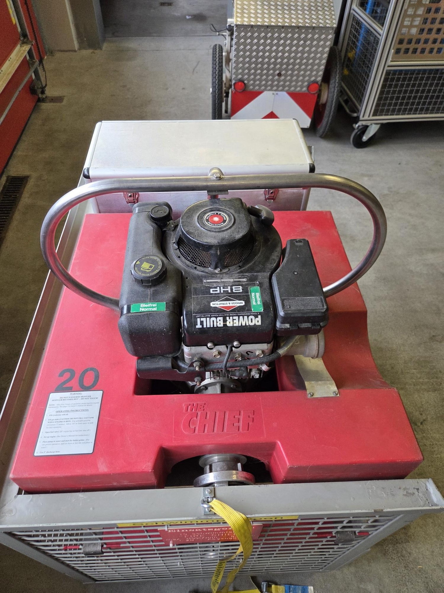 Die Feuerwehr Bickenbach verkauft einzeln oder als Modul 2 Schwimmpumpen HALE Fire Chief. Typ: HALE Fire Chief 1.100 l/min bei 0,5 bar 2 B-Abgänge 8 PS Briggs & Stratton Motor Einsatzbereiter Zustand, altersgemäße Gebrauchsspuren. Die Pumpen sind seit ca. 2 Jahren nicht mehr gelaufen, evtl. sind Wartungsarbeiten erforderlich. Die beiden Schwimmpumpen sind als Modul in einer Gitterbox mit Zwischenboden gelagert. Die Abgabe der Pumpen kann einzeln erfolgen oder als komplettes Modul. Preise: Einzelne Pumpe: € 700,- VHB Komplettes Modul (2 Schwimmpumpen, Gitterbox, Zwischenboden, Lagerkiste für 2 Wathosen): € 1.400 VHB Kein Versand, nur Abholung. Preis: 800.00 Euro VHB 26.03.2026 Anzeige-Nr.: 100700 | ||