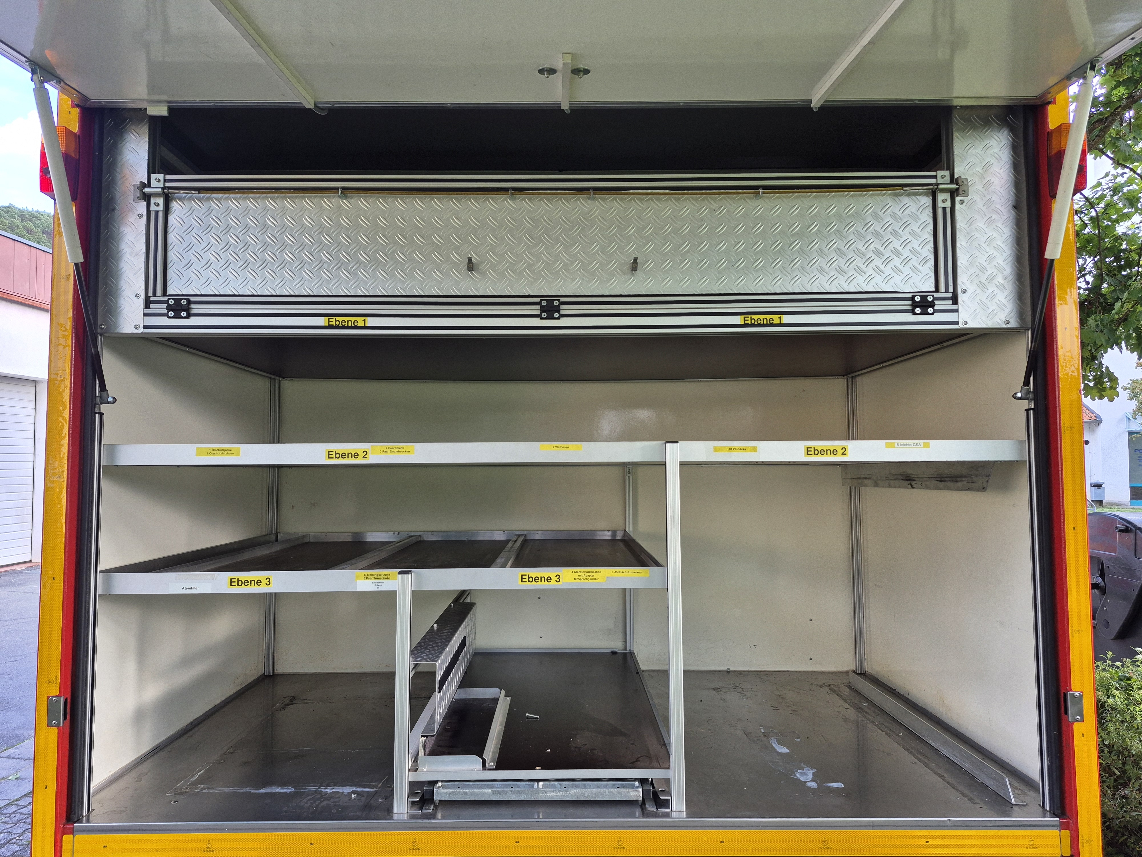 Gerätewagenaufbau mit 4 Rollos un einer Heckklappe