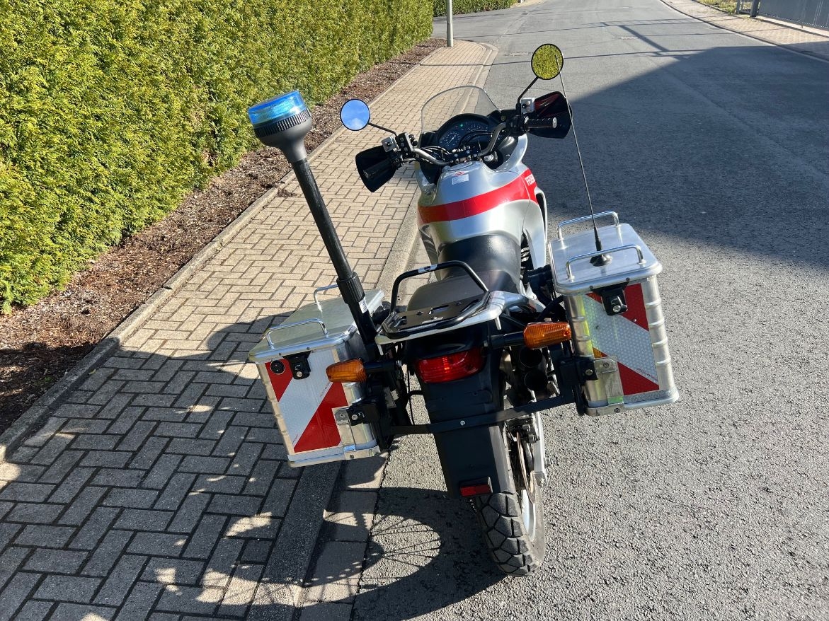 Zum Verkauf kommt ein sehr gut erhaltenes Feuerwehr Motorrad aus 1. Hand direkt für Feuerwehr so aufgebaut worden. Honda Montesa ( Trans Alp) 650 ccm , 53 PS , mit original 12300 km, Ausstattung : Funkvorbereitung ,es war schon ein Digital Funk verbaut,die Technik ist in den Seitenkoffern verbaut , die Bedienung am Lenker . Frontblitzer , 3 RKL aus Auszugstab ,elektrisches Signalhorn. Die Sondersignaleinrichtungen sind eingetragen 31.03.2026 Anzeige-Nr.: 100803 | |||
