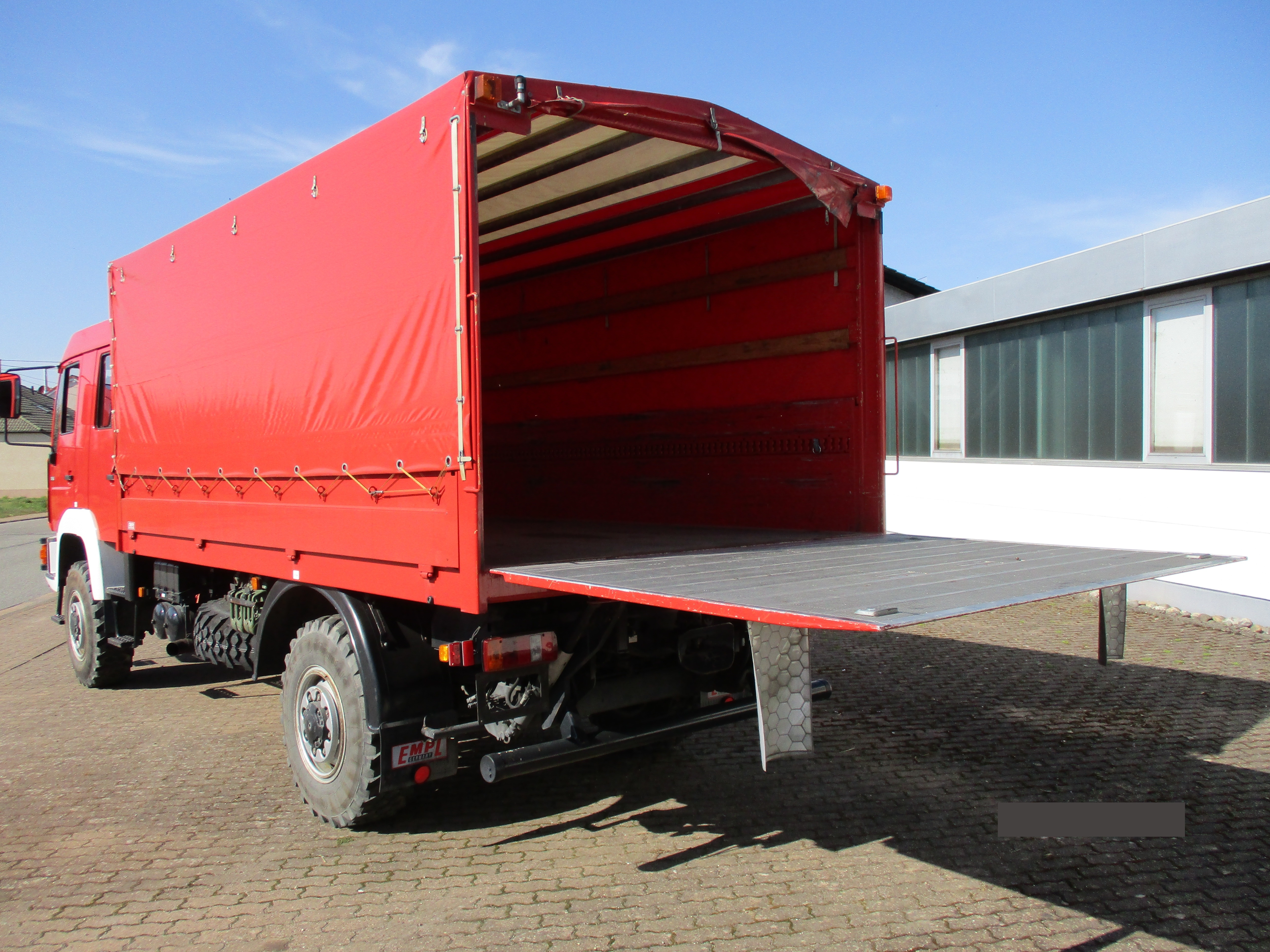 GW-L2 auf MAN 10.163 Doppelkabine 4x4 Km-Stand ca. 44.000 Leergewicht; 6.350 kg Gesamtgewicht; 10.500 kg Ggf. ist eine Ablastung auf 7,49 t möglich Mannschaftskabine 1/5 Besatzung Standheizung 4x4 Ladebordwand 1.000 kg Ladungssicherungsschienen für bis zu Ca. 8-10 Rollwagen (EURO Paletten Maß) Mannschaftskabine mit aufklappbarer Feuerwehrsitzbank Ohne Beladung, ohne Garantie, Zwischenverkauf, irrtümliche Angaben, alle Rechte vorbehalten. Preis auf schriftliche Anfrage der Verwaltung! Eine Besichtigung ist "nur" nach Terminabsprache möglich. 02.10.2025 Anzeige-Nr.: 99049 | |||