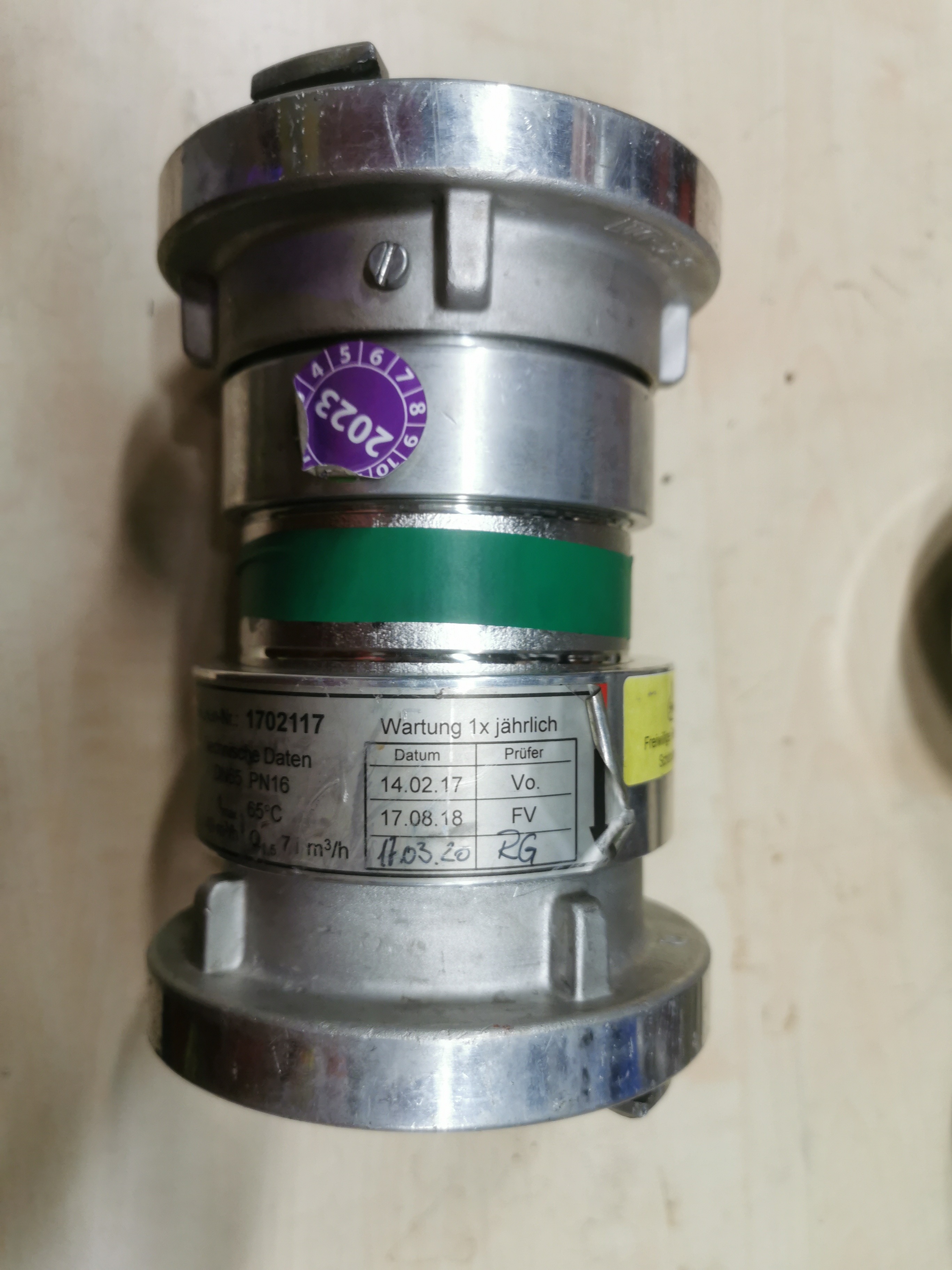 Wir verkaufen einen gebrauchten Systemtrenner der Firma Luitpold Schott Typ BA F1-65 - Nenngrösse: DN 65 - Anschluss: Storz B - Nenndruck: PN 16 - Durchfluss: ca. 1233 l/min - Länge: 175 mm - Durchmesser: 126 mm - Gewicht: 2,4 kg - Material: Aluminium - letzte Prüfung: 2023 Preis: 200€ je Stück Versand gegen Versandkosten Verkauf ohne Garantie, Gewährleistung oder Rücknahme. Preis: 200.00 Euro 07.10.2025 Anzeige-Nr.: 99086 | ||