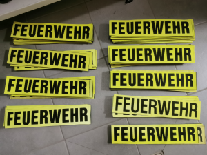 Wir verkaufen 85 Klett-Rückenschilder "FEUERWEHR" für Feuerwehrjacken etc.