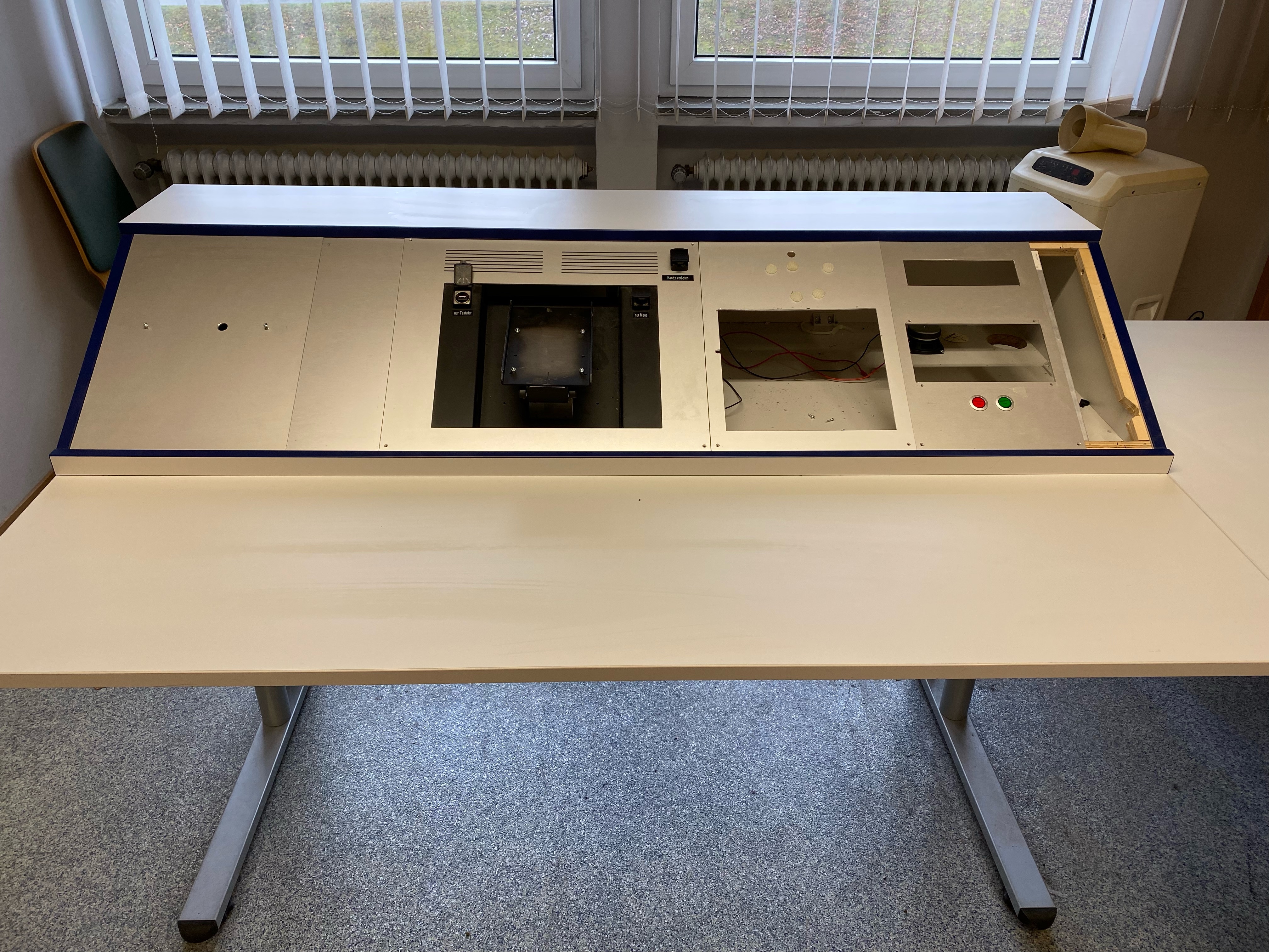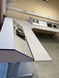 Zum Verkauf steht der hier angebotenen Funktisch (ohne elektrische Geräte) als Winkelkombination. Das Winkelstück muss nicht unbedingt verwendet werden. Zusätzlich kann gegen Aufpreis ein 19“ Zoll Technik-Schrank zur Wandmontage mit Tür und von hinten klappbar (Höhe ca. 100 cm) mit erworben werden. Die Größe des Tisches ist dem Bild zu entnehmen. Nach Rücksprache ist eine Besichtigung möglich. Bei Interesse gerne melden. VHB: Keine Garantie, keine Gewährleistung! 19.10.2025 Anzeige-Nr.: 99171 | ||
