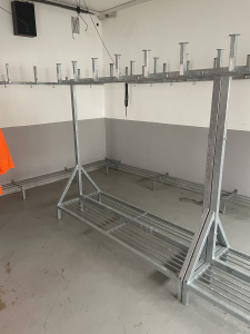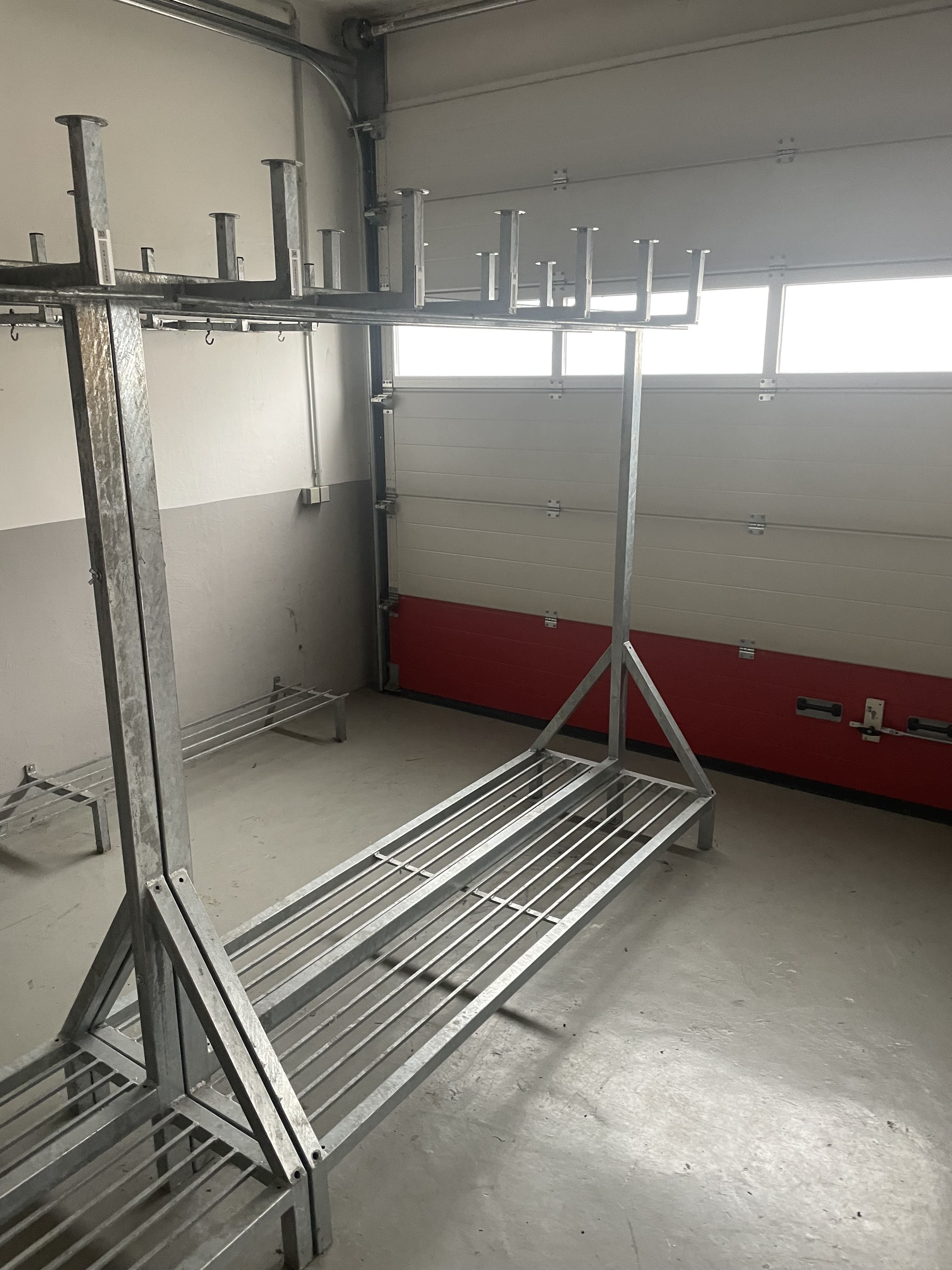 Wir bieten eine freistehende Garderobe für die Schutzkleidung der Einsatzkräfte. Die ca. 10 Jahre alte Garderobe bietet Platz für die PSA von 24 Kameradinnen und Kameraden. Sie besteht aus zwei Teilen und kann somit auch getrennt aufgestellt werden. Sie wurde in Eigenleistung erstellt und für unsere Anforderungen angepasst. Der genannte Preis bezieht sich auf die damaligen Materialkosten. Die Garderobe muss in Cramberg im Rhein-Lahn-Kreis abgeholt werden. Für weitere Fragen stehen wir gerne zur Verfügung.