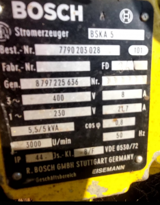 BSKA 5-Stromerzeuger Ich biete das gezeigte Aggregat zum Kauf an. Herkunft: Feuerwehr Hersteller: Bosch Motor: Sachs "Stamo" Zweitakter Leistung: 5kVA Spannung: 230V/ 400 V Zustand: Siehe Bilder, funktionstüchtig Das Gerät wird ohne aktuelle Prüfungen verkauft. Hinweis: Dies ist ein privates Angebot. Rücknahme oder Gewährleistung ausgeschlossen. Gekauft wie gesehen oder getestet. Preis: 600.00 Euro 30.10.2025 Anzeige-Nr.: 99301 | ||