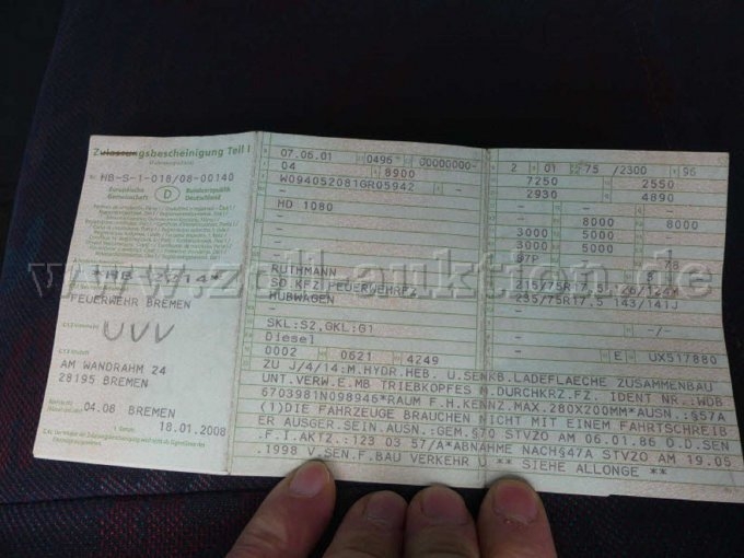 | Das Fahrzeug ist zu verkaufen mit einem TRW Koffer, der auch als Wohnmobil oder Büro ausgebaut werden kann. Er hat Klima und ein Notstromaggregat dabei. Der zweite Container ist eine Transportmulde, ideal zum einfahren für sehr niedrige Fahrzeuge. Auch geeignet für das Beladen von Paletten Hubwagen. Fahrzeugart : So-KFZ Aufbauart : Feuerwehrfz. Hubwagen, 2-türig Fabrikat : RUTHMANN Typ / Untertyp : HD 1080 / 810 D Vario Fahrzeug-Ident-Nummer : WDB6703981N098946 Hubraum / Leistung : 4249 ccm / 75 kW Motorart / Zylinder / Motorbauart : Diesel Kat / 4-Zylinder / Reihe Abgascode : EU2 Plätze : 3 KBA-Nr.: : 0496000 zul. Gesamtgewicht : 8.000 kg Reifendimension vorn / hinten : 215/75 R 17.5 126/124 W M+S / 235/75 R 17.5 143/121 J Reifenfabrikat : Bridgestone Transporter-Reifen Profiltiefe in (mm) : 6 mm Reifenzustand : verkehrssicher Anzahl der Achsen : 2 Baujahr / Erstzulassung : 2001 / 07.06.2001 Letzte Zulassung : 18.01.2008 Nächste HU / AU / SP : 05.2025 / 05.2025 / 05.2026 Laufleistung abgelesen : 123.256 km Farbe : FEUERROT Lackart : Uni zzgl. gesetzliche MwSt. ab Lager 84427 St. Wolfgang -Zwischenverkauf vorbehalten- Zahlungskonditionen: 100% vor Verladung. Die Ware bleibt bis zur vollständigen Zahlung unser Eigentum. Es gelten unsere Allgemeinen Geschäftsbedingungen. Angebot ist freibleibend ohne Gewähr und Garantie. Sehr gerne erstellen wir Ihnen ein unverbindliches Angebot. Unser komplettes Produktangebot finden Sie auf https://www.decker-containerbau.com 30.10.2025 Anzeige-Nr.: 99302 | |||