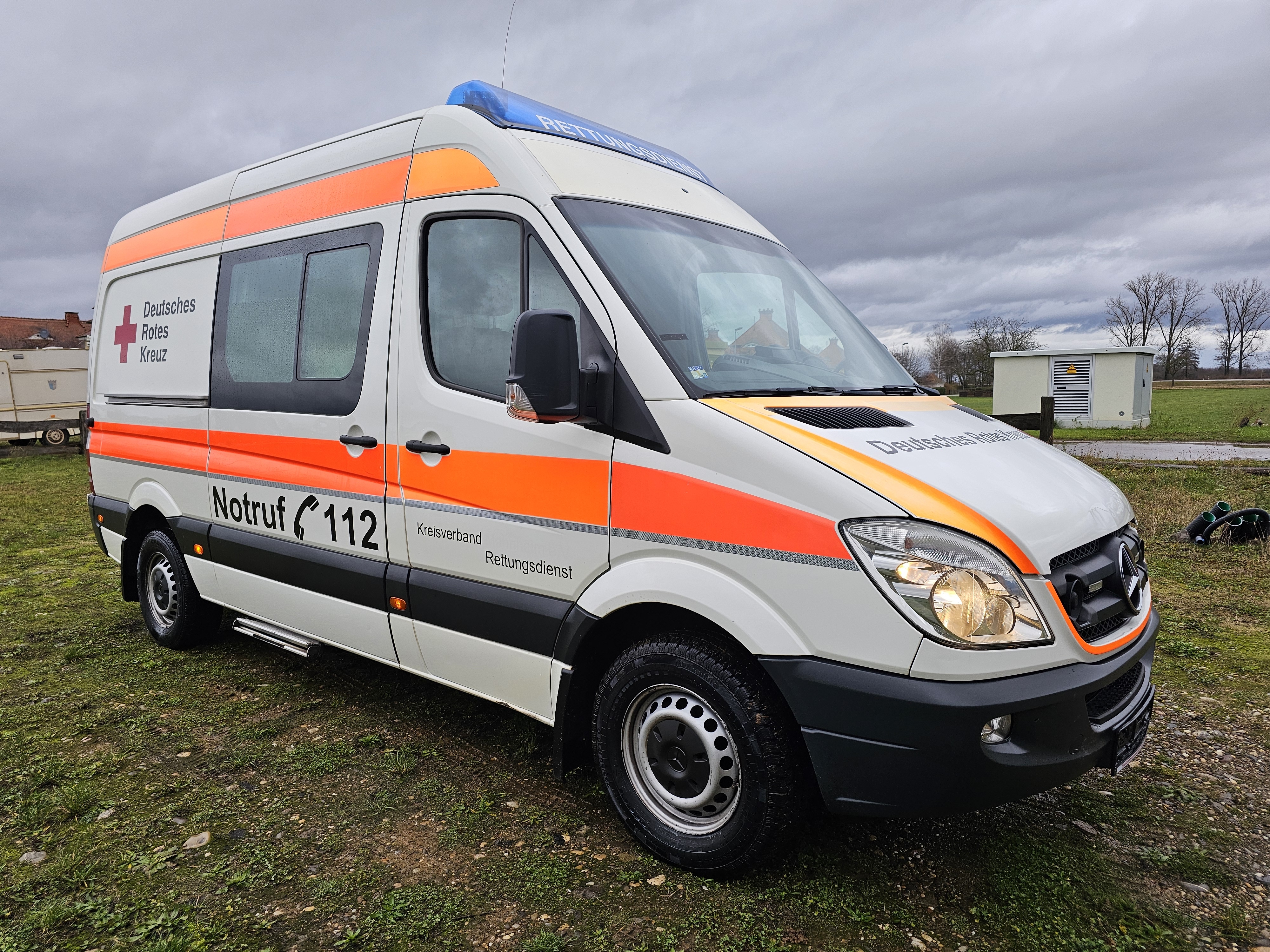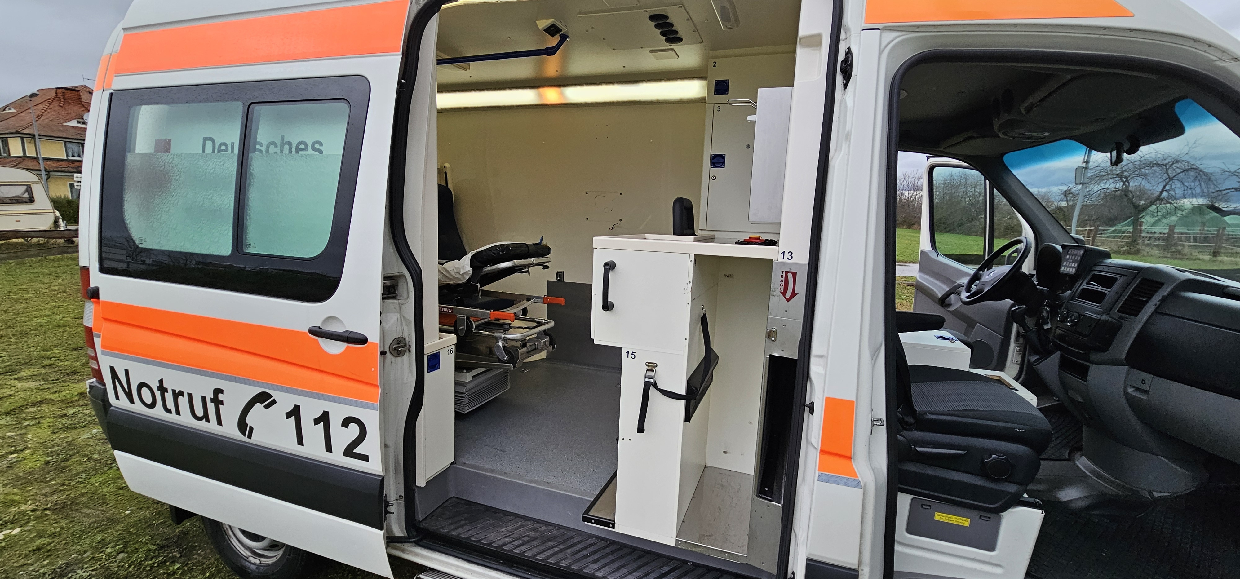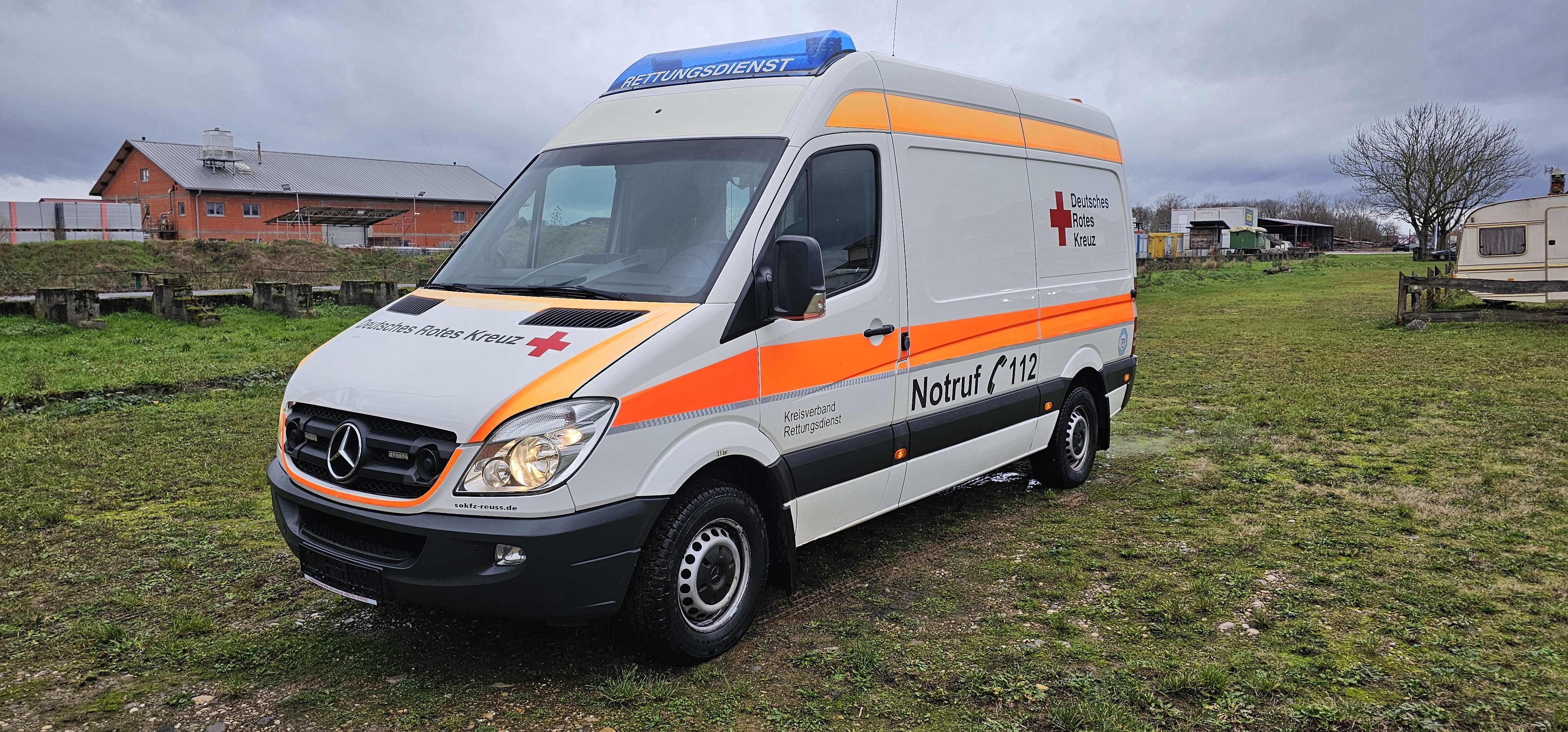 Zum Verkauf steht ein Rettungswagen des Aufbauherstellers Strobel auf Mercedes Benz Sprinter Fahrgestell.