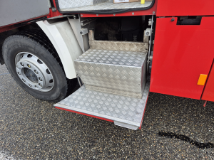 Tanklöschfahrzeug Mercedes-Benz 1634 AF 4x4 Feuerwehr Automatikgetriebe ZF5 HP600 Allradantrieb mit Untersetzung, Sperre hinten und zentral Wassertank: 2500 Liter Schaumtank: 500 Liter Pumpe: Rosenbauer NH300 2'800 l/min Leistung, Hochdruck 300 l/min Schnellangriff links und rechts Dachwerfer Rosenbauer RM24M mit 2'800 l/min, Wurfweite 70m Lichtmast Clark TF445-8, 2x 1000W, Lichtpunkthöhe 5m