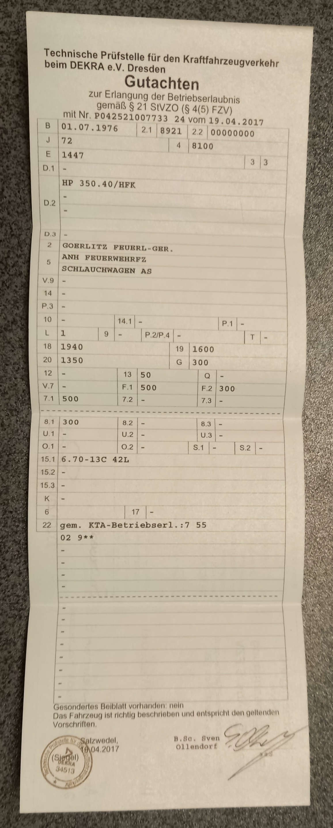 Hersteller: VEB Feuerlöschgerätewerk Görlitz Baujahr: 1976 Der Anhänger befindet sich dem Alter entsprechend in einem sehr ordentlichen und gepflegten Zustand. Die Reifen stammen aus dem Jahr 2016. Kleinere Lackkratzer bzw. Roststellen sind vorhanden, Schläuche sind nicht enthalten. Die Schlauchhaspel wird mit Originalkugelkopfkupplung sowie der auf den Bilder abgebildeten Plane (Extraanfertigung) veräußert. Weiterhin ist jene fahrbereit und funktionsfähig. Eine Besichtigung ist ausdrücklich, nach vorheriger Terminabsprache, erwünscht. Die Übergabe erfolgt erst nach Zahlungseingang, bar oder per Überweisung sind möglich. Die Abholung hat, nach vorheriger telefonischer Absprache, innerhalb von 10 Tagen nach Erwerb zu erfolgen. Der Erwerber hat die Abholung und ggf. die Verladung (inkl. Ladesicherung) auf eigene Kosten und Verantwortung durchzuführen. 16.11.2025 Anzeige-Nr.: 99429 | ||