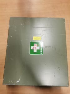 gebrauchter Feuerwehr-Verbandkasten als Holzkiste