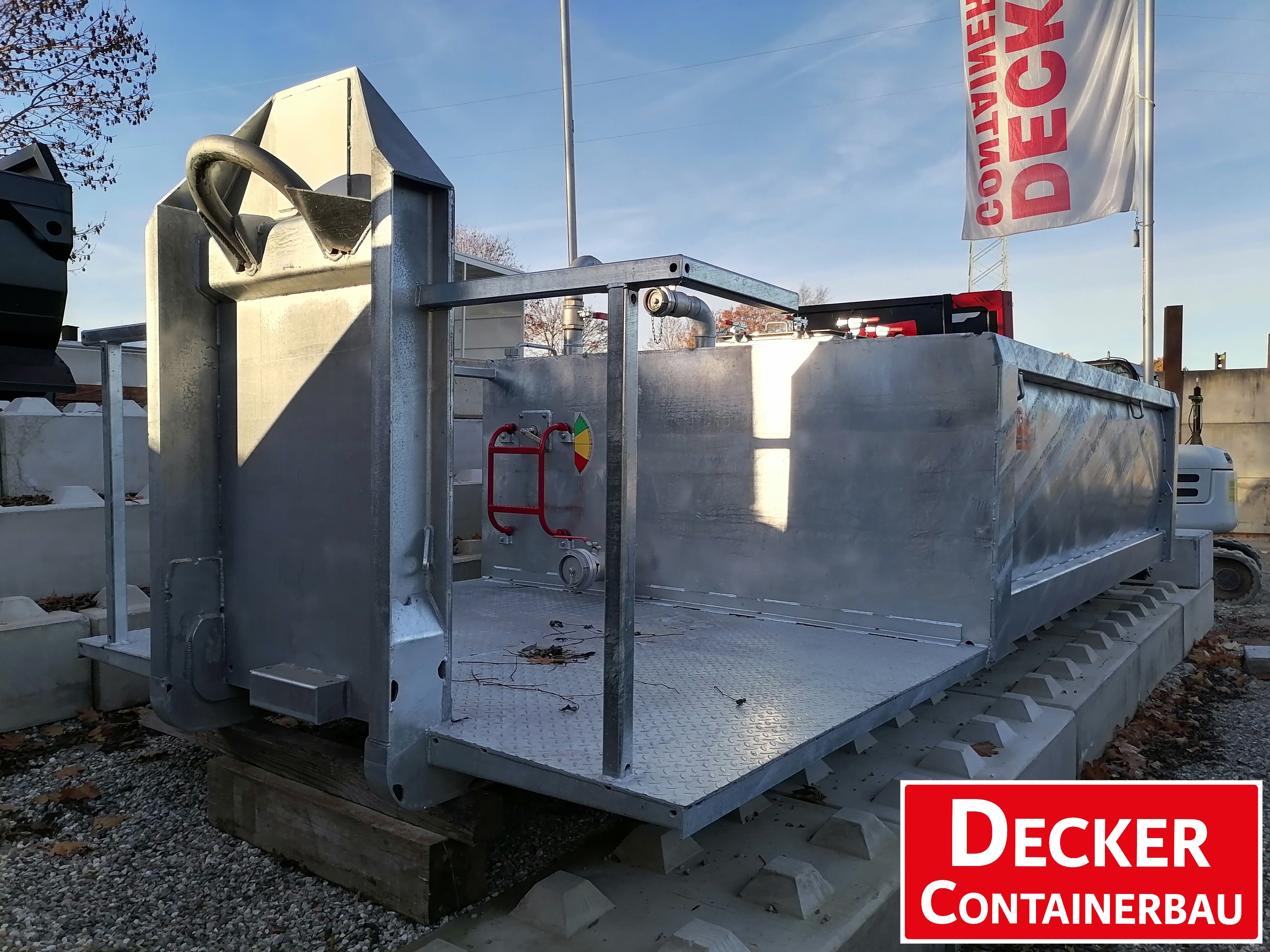 Wassertank 11m³ mit Plattform vorne, Sonderbau ab Lager 84427 St.Wolfgang verfügbar, Zwischenverkauf vorbehalten Abrollbehälter nach DIN 14505 Standardausstattung: -Unterrahmen INP 180, verstärkt -6100 mm lang -Hakenhöhe 1570mm -Aufnahmebügel 60 mm -C-Verriegelung -Außenrollen aus Polyamid, abschmierbar und wechselbar -Außenrollen ganz nach hinten gesetzt wegen der Wasseranschlüsse -UVV geprüft DIN 30722-1 (15.000 kg) Aufbau: vorne: -Plattform aus Stahlblech glatt, 5mm stark mit leichtem Unterrahmen, Antirutschbeschichtet Länge 1800mm Breite 2500mm Belastbarkeit 800 kg/m² Geländer - es kommt dazu eine Skizze -hinten -Tank 11 m³ Volumen, exakte Höhe ermittelt sich durch das Volumen -4300 mm lang -2300 mm breit -ca.1100mm hoch -Boden 5mm -Wandstärke 3mm -2 Schwallwände -1 St. Leiter/Aufstieg vorne rechts -1 St. Domdeckel/Einstieg Zusatzausstattung Tank: -1 St. Befüllanschluss der Größe Storz B mit Kugelhahn und Deckel vorne oben mittig -1 St. Entlüftung mit Kugelhahn vorne -1 St. Entlüftung mit Kugelhahn hinten -1 St. Auslauf/Sauganschluss der Größe Storz A mit Kugelhahn und Deckel vorne unten mittig, aber 400mm nach rechts versetzt -1 St. Auslauf/Sauganschluss der Größe Storz A mit Kugelhahn und Deckel links hinten unten -1 St. Auslauf/Sauganschluss der Größe Storz A mit Kugelhahn und Deckel rechts hinten unten - Füllstandsanzeige vorne rechts Korrisionsschutz: -Tank entfettet und gestrahlt -innen grundiert mit Epoxy Lackierung 80 µm -außen grundiert mit Epoxy Lackierung 50 µmZusatzausstattung: Farbgebung: -2K Lackierung außen im Farbton RAL 3000 Feuerrot ab Lager 84427 St.Wolfgang verfügbar -Zwischenverkauf vorbehalten- Zahlungskonditionen: 100% vor Verladung. Die Ware bleibt bis zur vollständigen Zahlung unser Eigentum. Es gelten unsere Allgemeinen Geschäftsbedingungen. Angebot ist freibleibend ohne Gewähr und Garantie. Sehr gerne erstellen wir Ihnen ein unverbindliches Angebot. Unser komplettes Produktangebot finden Sie auf decker-containerbau.com 05.12.2025 Anzeige-Nr.: 99631 | |||