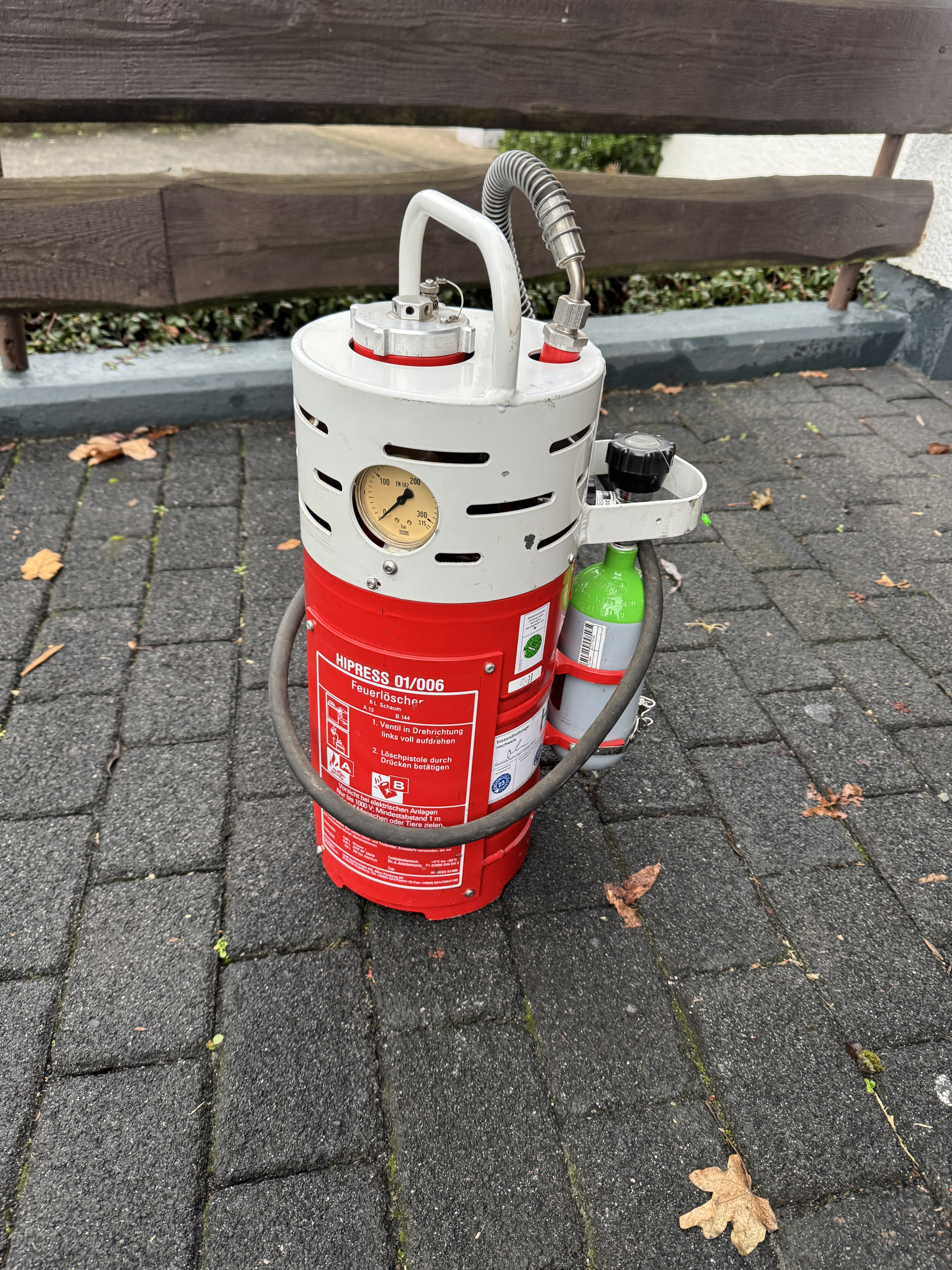 Verkaufe diesen Hipress Feuerlöscher in gutem Zustand. Er hat ein Fassungsvermögen von 6Liter und eine angebaute Druckluftflasche Preis: 250.00 Euro 10.12.2025 Anzeige-Nr.: 99665 | ||