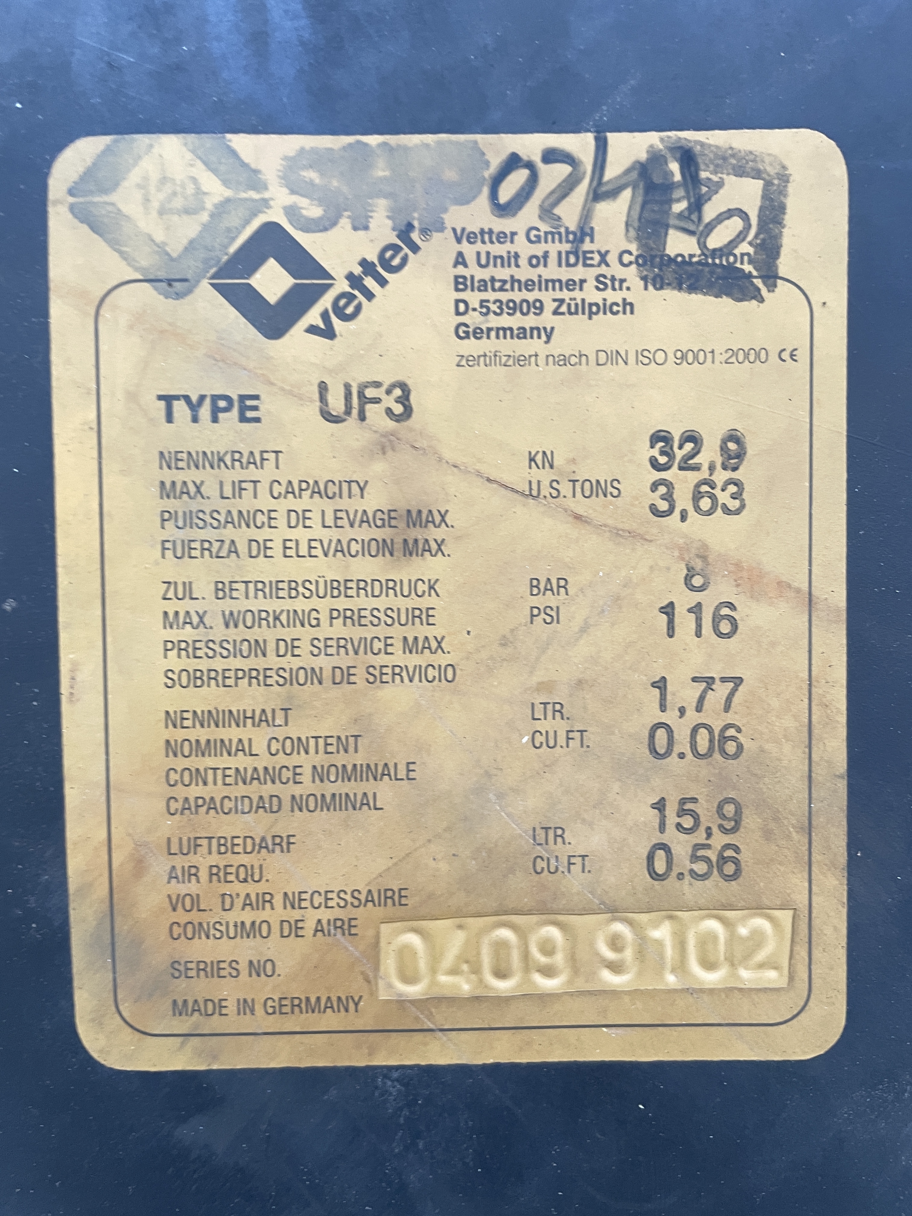 wir verkaufen hier einen Hebekissensatz mit 8bar Betriebsdruck der Firma Vetter. Funktion ist gegeben und uns sind keine Beschädigungen bekannt. Der Satz besteht aus : Doppelsteuerorgan mit Totmannschaltung Druckminderer 200/300bar 2 Stück Füllschlauch (gelb+rot) 5m Mini Hebekissen Typ UF3 2 Stück Hebekissen Typ V40 Für weitere Informationen oder Bilder können Sie mich gerne anschreiben. Preis: 500.00 Euro VB 16.12.2025 Anzeige-Nr.: 99697 | ||