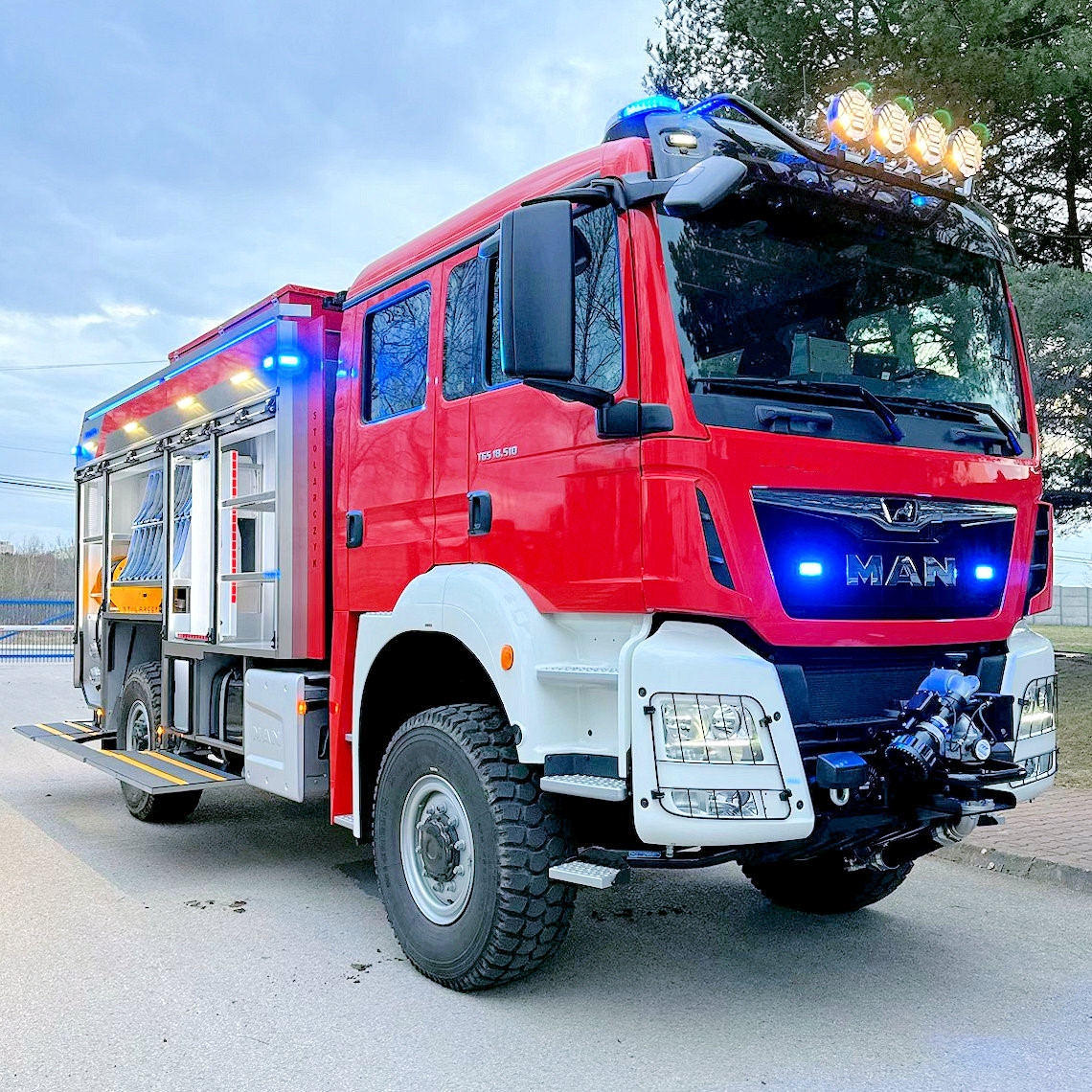 Aus unserem sofort verfügbarem Neufahrzeugbestand bieten wir Ihnen an: TLF 4000/TLF 5000 Allrad auf geländegängigem MAN TGS 18.510 Allrad-Fahrgestell Hier kommt unser MAN-Berglöwe! Mit seinen 510 PS und dem geländegängigen, singlebereiften Allradfahrgestell ist anspruchsvolles Gelände sein Revier. Damit ist er prädestiniert für große Steigungen, schlechte Witterung und Reviere weitab jeder Straße. Fahrgestell: