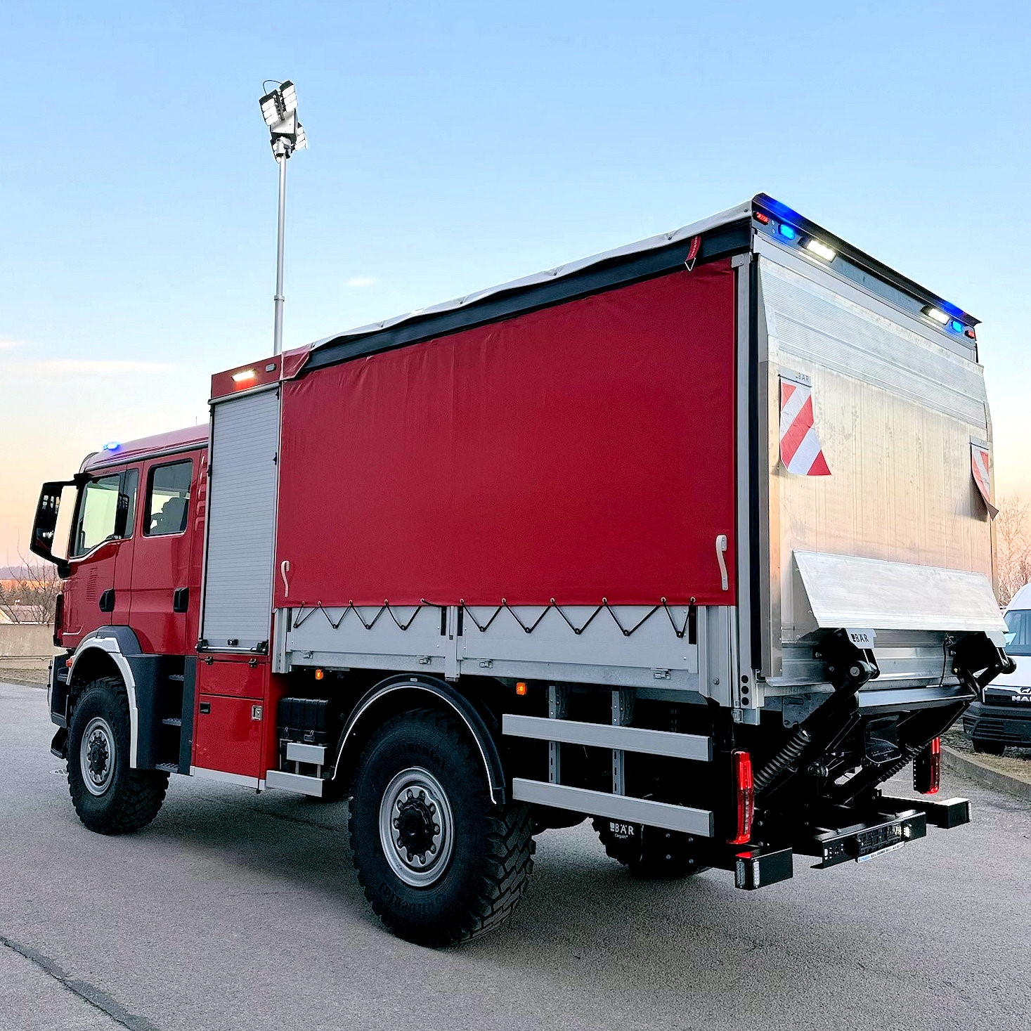Sie suchen ein gutes und günstiges Einsatzfahrzeug für Ihre Feuerwehr? Dann sind Sie bei uns richtig! Aus unserem Neufahrzeugsortiment bieten wir Ihnen an: Gerätewagen-Logistik GW-L 2 Allrad auf geländegängigem MAN TGM 18.320 4x4-Fahrgestell Unser robustes Kraftpaket für schwere Lasten. Seine hohe Geländegängigkeit hilft auch in schwierigen Lagen weiter. Ob beim Unwettereinsatz, beim Aufbau einer Wasserversorgung, als modularer Rüst- oder Gerätewagen auch mit Seilwinde oder als Behelfs-TLF mit Wasserbehältern. Fahrgestell: