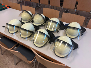 Verkauft werden 8 Schuberth Feuerwehrhelme Typ F120 Pro, Classic Leder komplett mit Kunstoffvisier (verstellbar) und Leder-Nackenschutz. Abgabe wegen Umstellung auf anderes Modell. Alle Helme haben leichte, gewöhnliche Gebrauchsspuren an der Oberfläche (siehe Fotos), sind abgesehen davon aber in einem top Zustand. Innenleben und Riemen sind in einem super Zustand. Die Helme sind voll einsatzbereit.