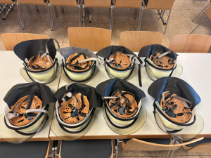 Bilder sind Bestandteil der Artikelbeschreibung, zum Verkauf stehen jedoch nur die Helme (Stühle und anderes sichtbares Beiwerk sind nicht Teil des Verkaufs).